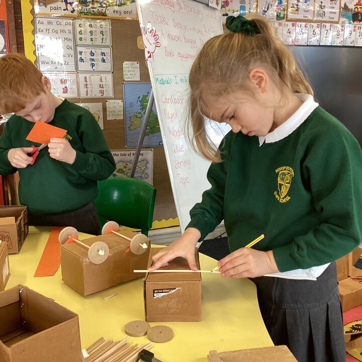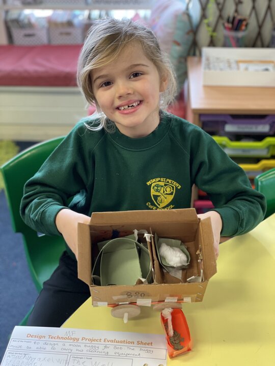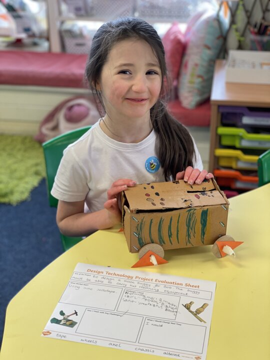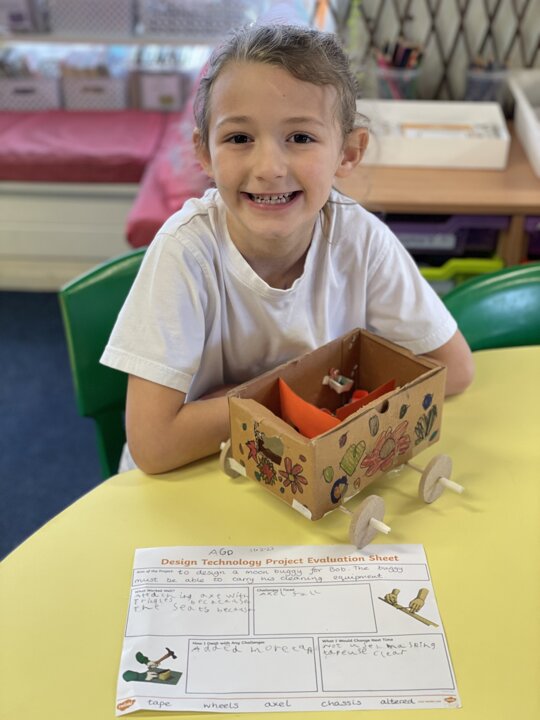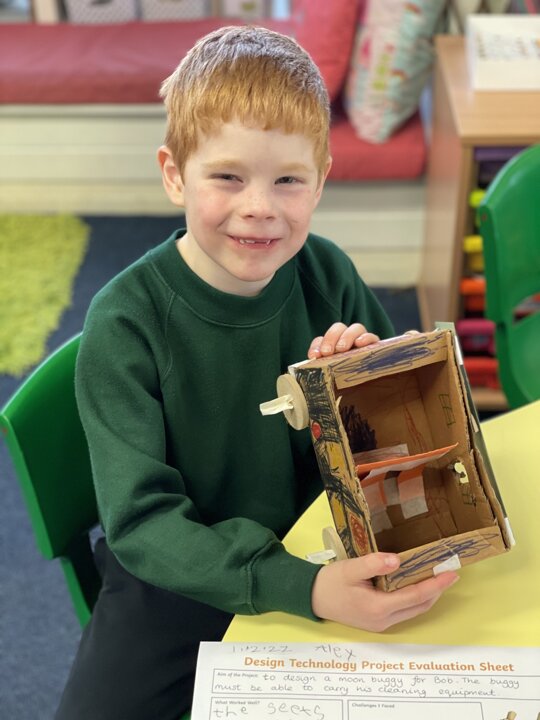 I set the children a challenge … Can you make a vehicle for Bob to use on the moon? It must be able to carry his cleaning equipment and have a space for Barry his dog too.