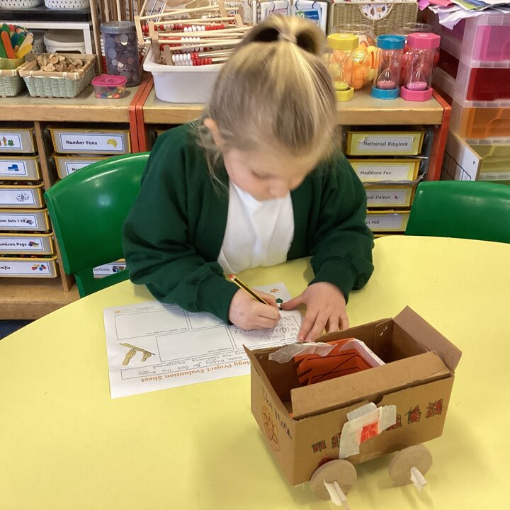 I am really impressed by all the different skills they used and their creativity, we have moving vehicles that have beds for Barry, windows, steering wheels, bins for the rubbish from the moon, sinks for Bob to wash his hands in and lots more! Some children decided their vehicles were more of a camper van than a work vehicle.