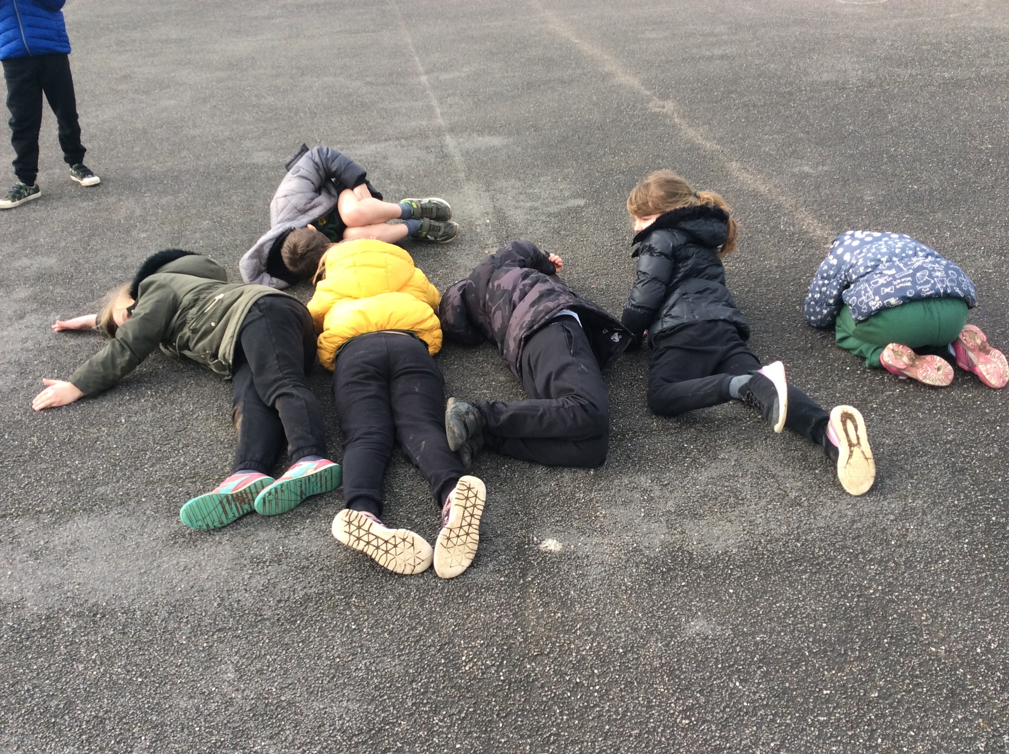 This week, children began with some teamwork. In groups, children had to use their bodies to create words (which also links to our typography topic in art!) This required children to discuss and work as a team to decide their roles and formulate the words.
