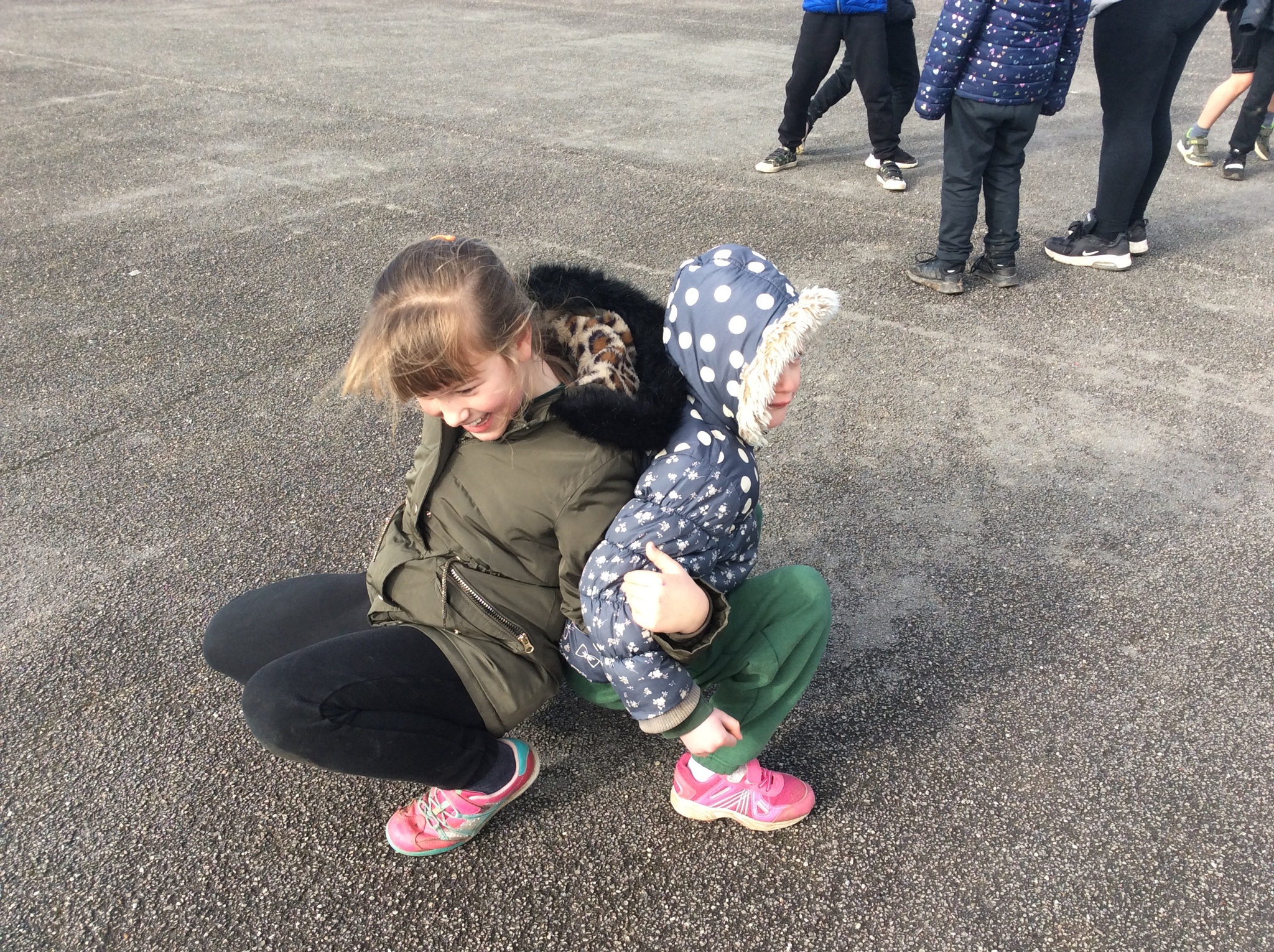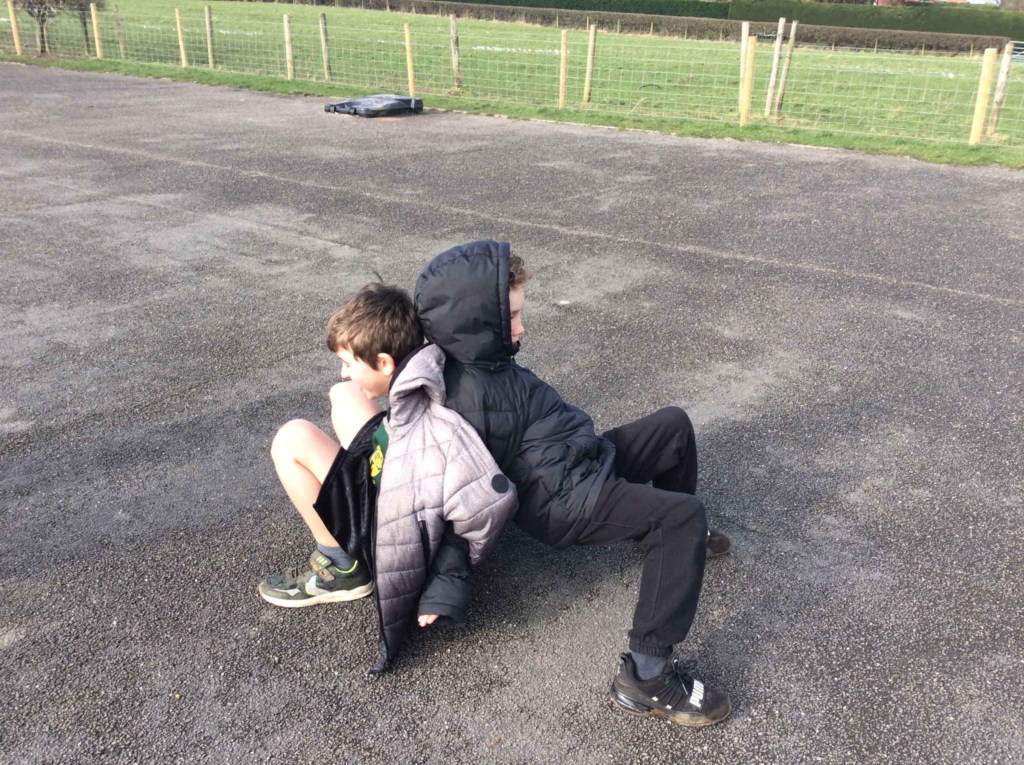 Next, children had to work in pairs to compete a task - they had to link arms and comfortably sit while leaning on each other. This proved to be quite a challenge as we had to place our trust completely in our friend not to let us fall.