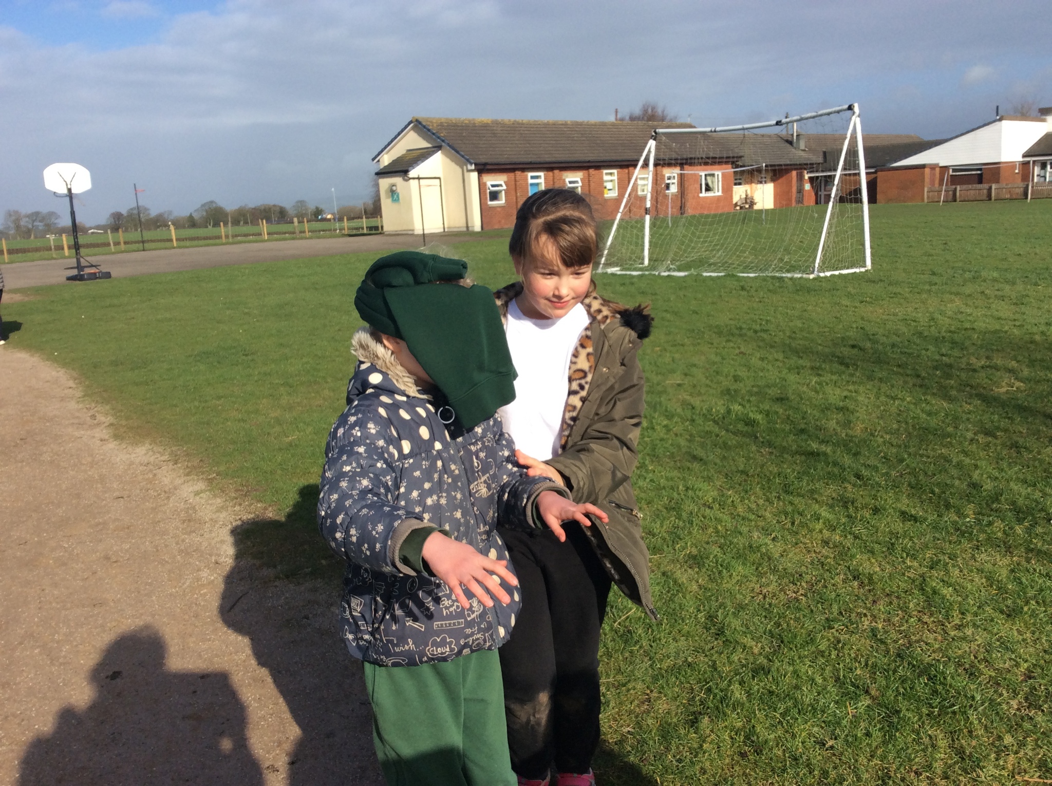 Finally, children put their complete trust in their friend as they used their voices to guide them around the field blindfolded! Children had to think of how to communicate to their blindfolded friend so that they would understand easily, whilst blindfolded children had to trust their friends completely.
