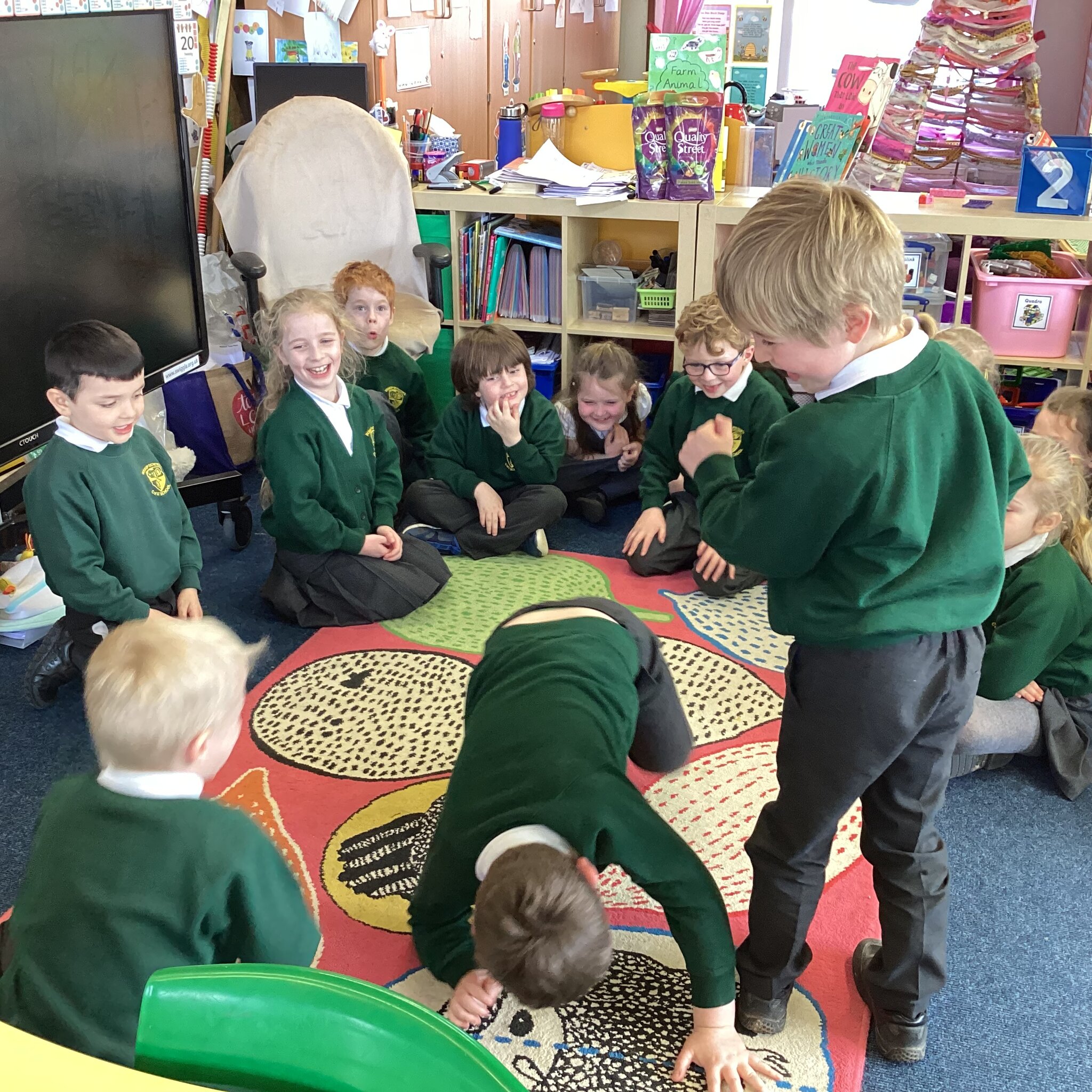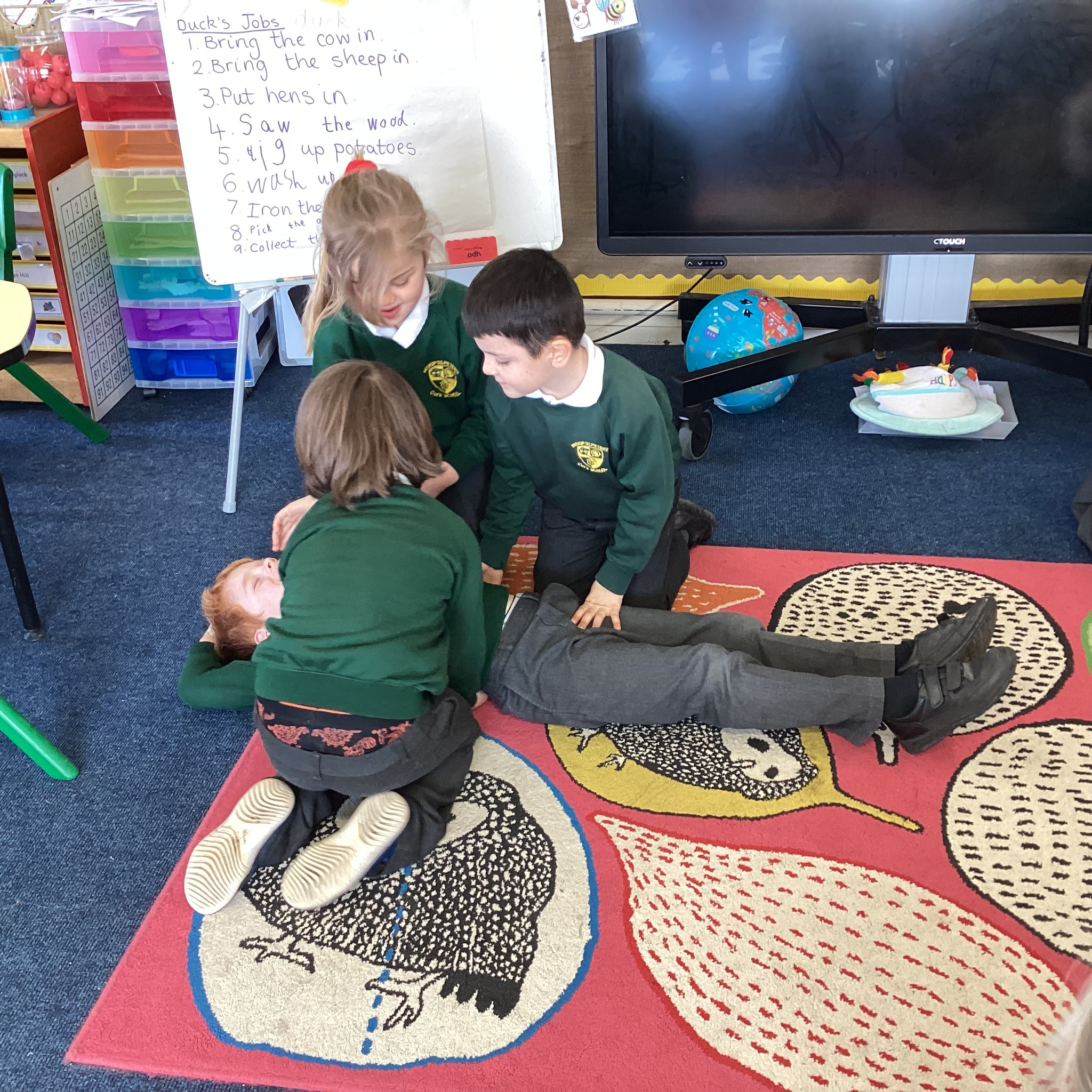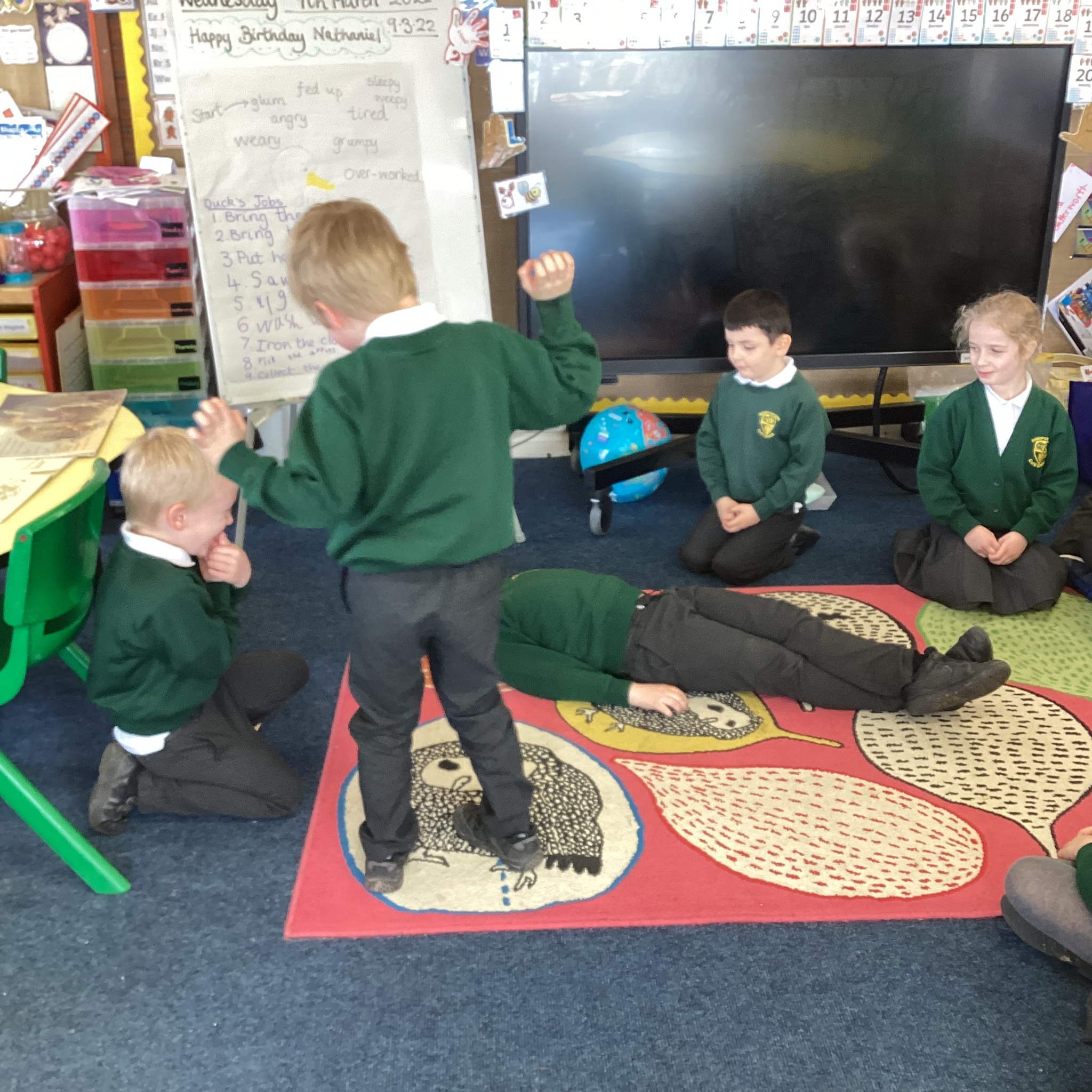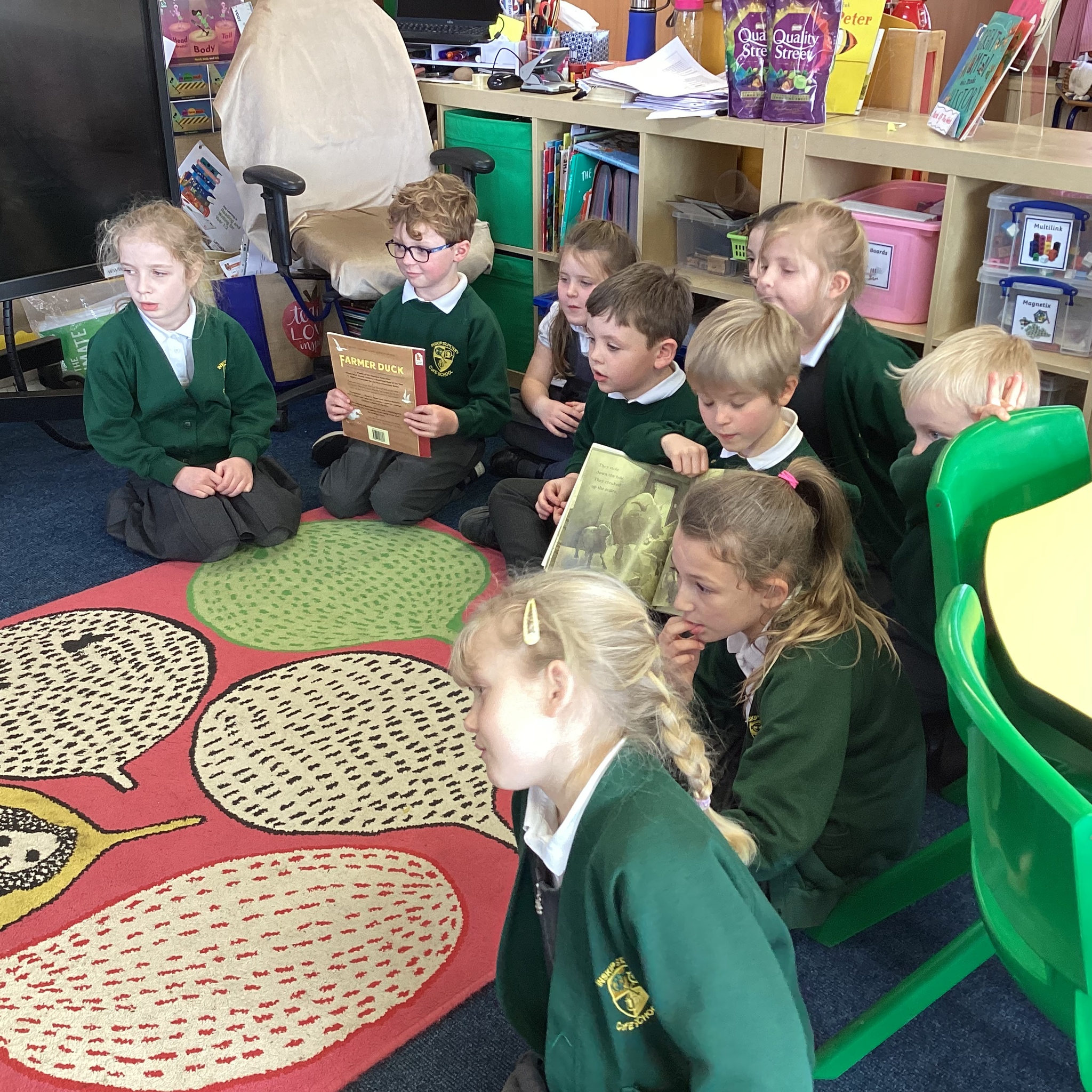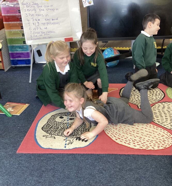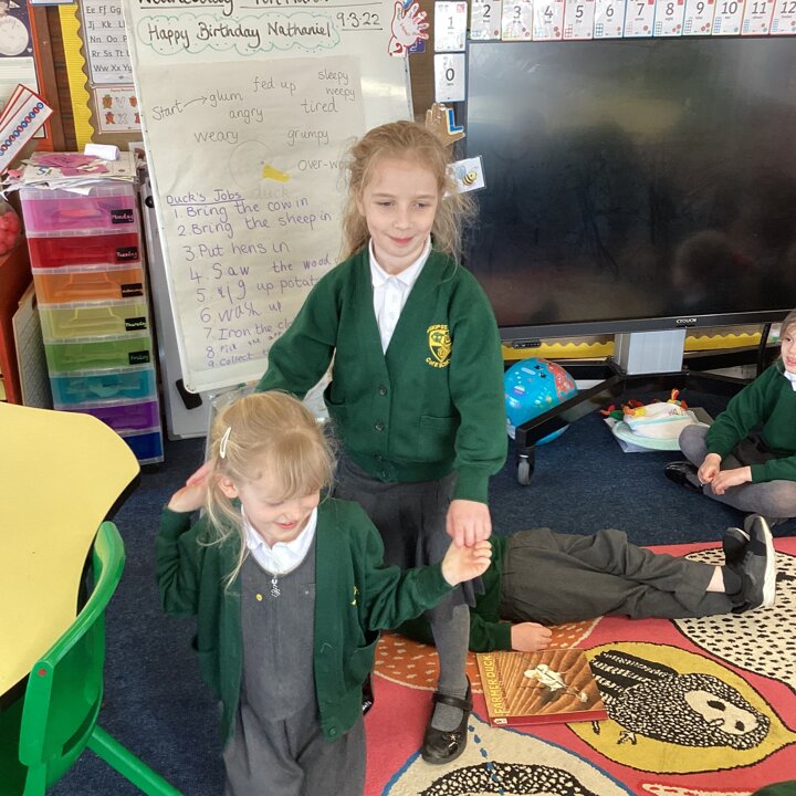 We have been enjoying reading and studying the story ‘Farmer Duck’ by Martin Waddell this week. The children acted out the story, first in pairs and then in small groups before performing it to each other as one activity this week. They had so much fun and I was so impressed with their storytelling through drama.