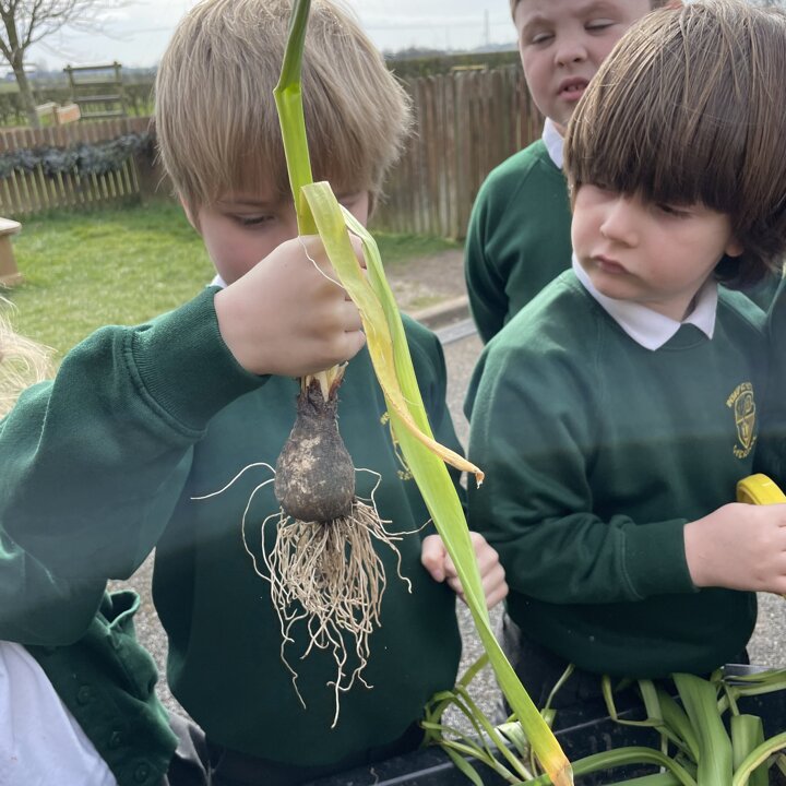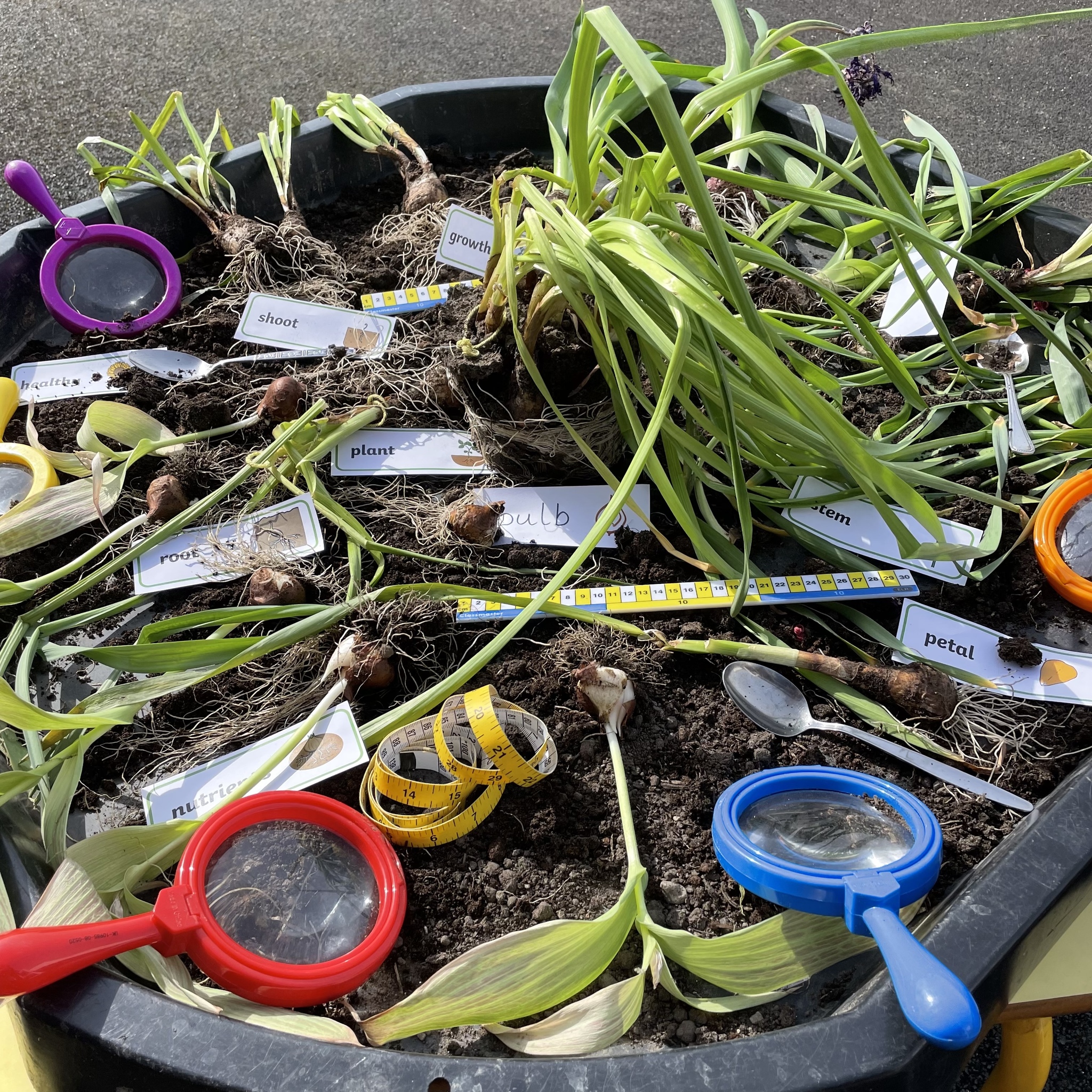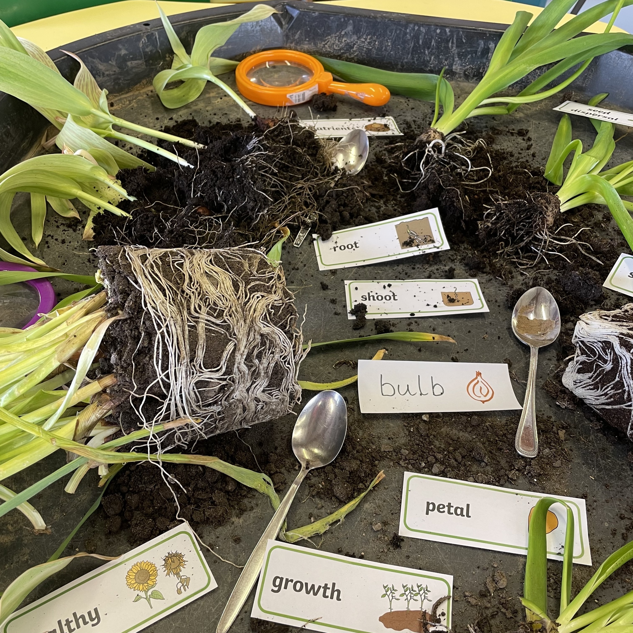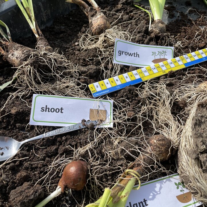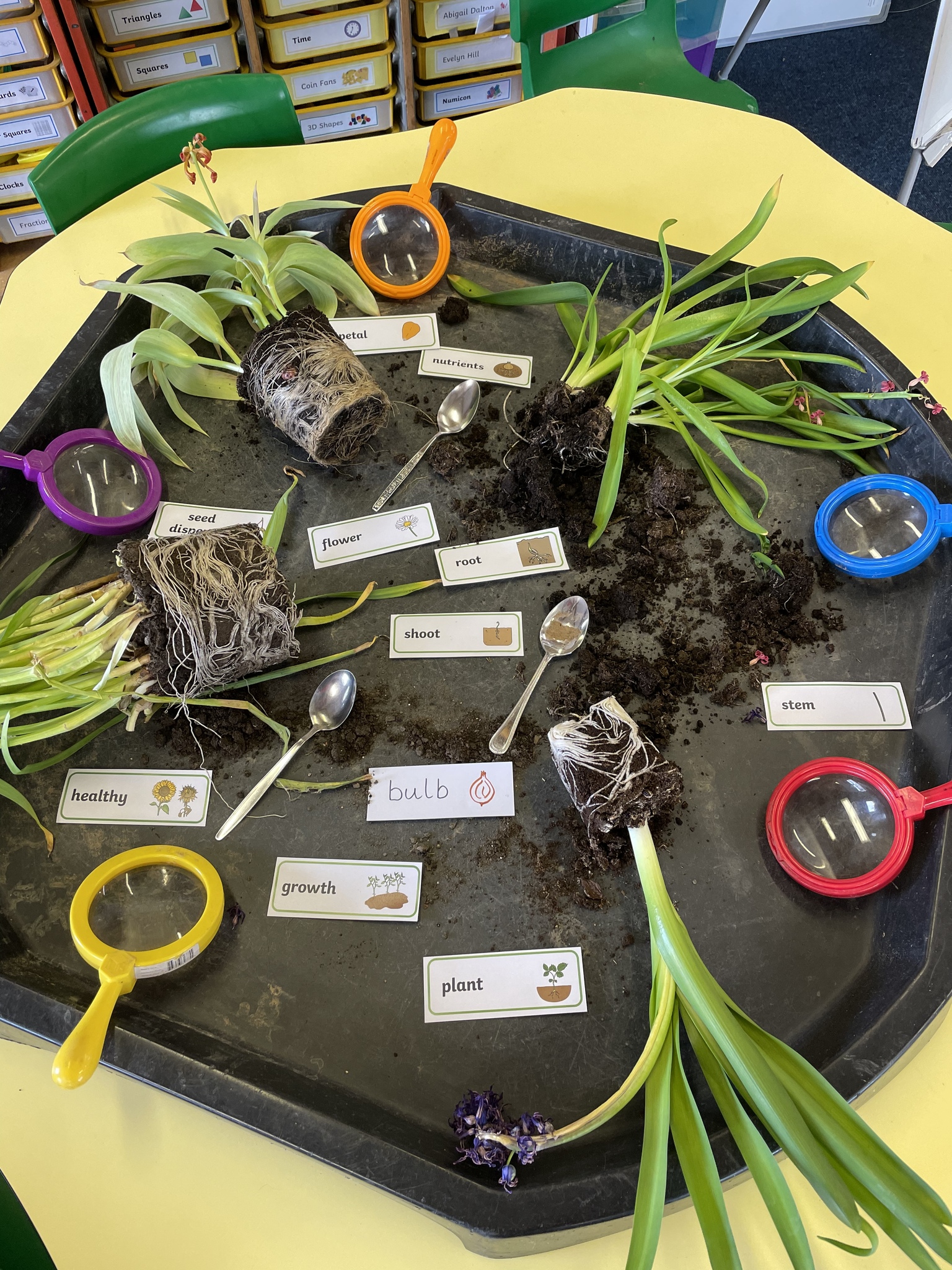 This week we took all the plants out of their pots and learnt about bulbs and how plants grow from bulbs and seeds.