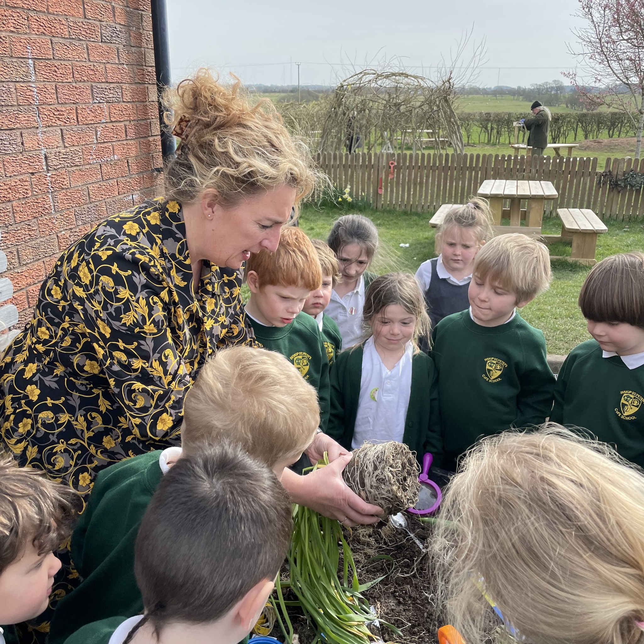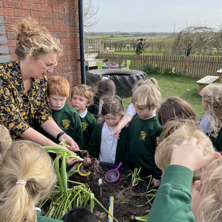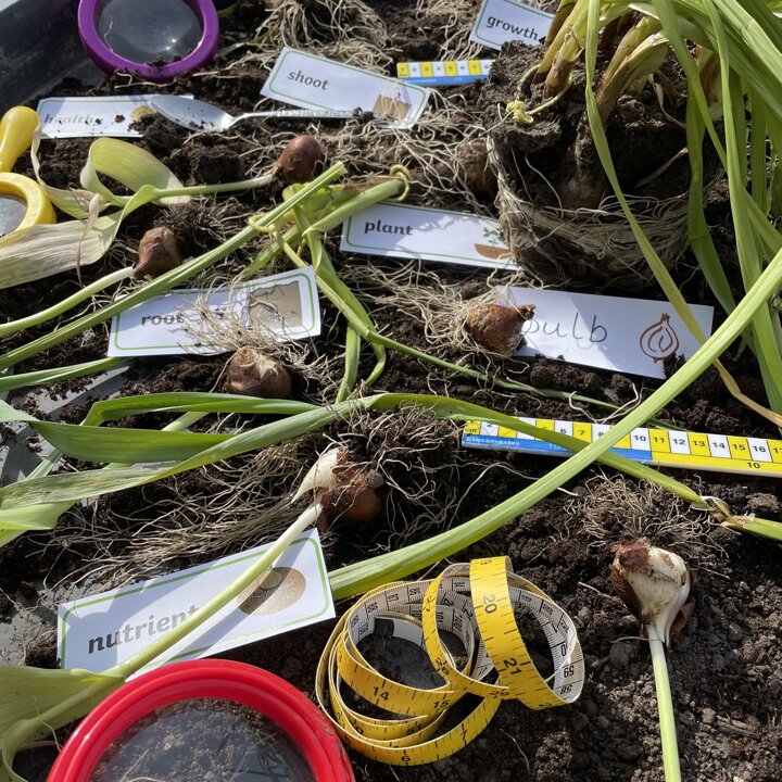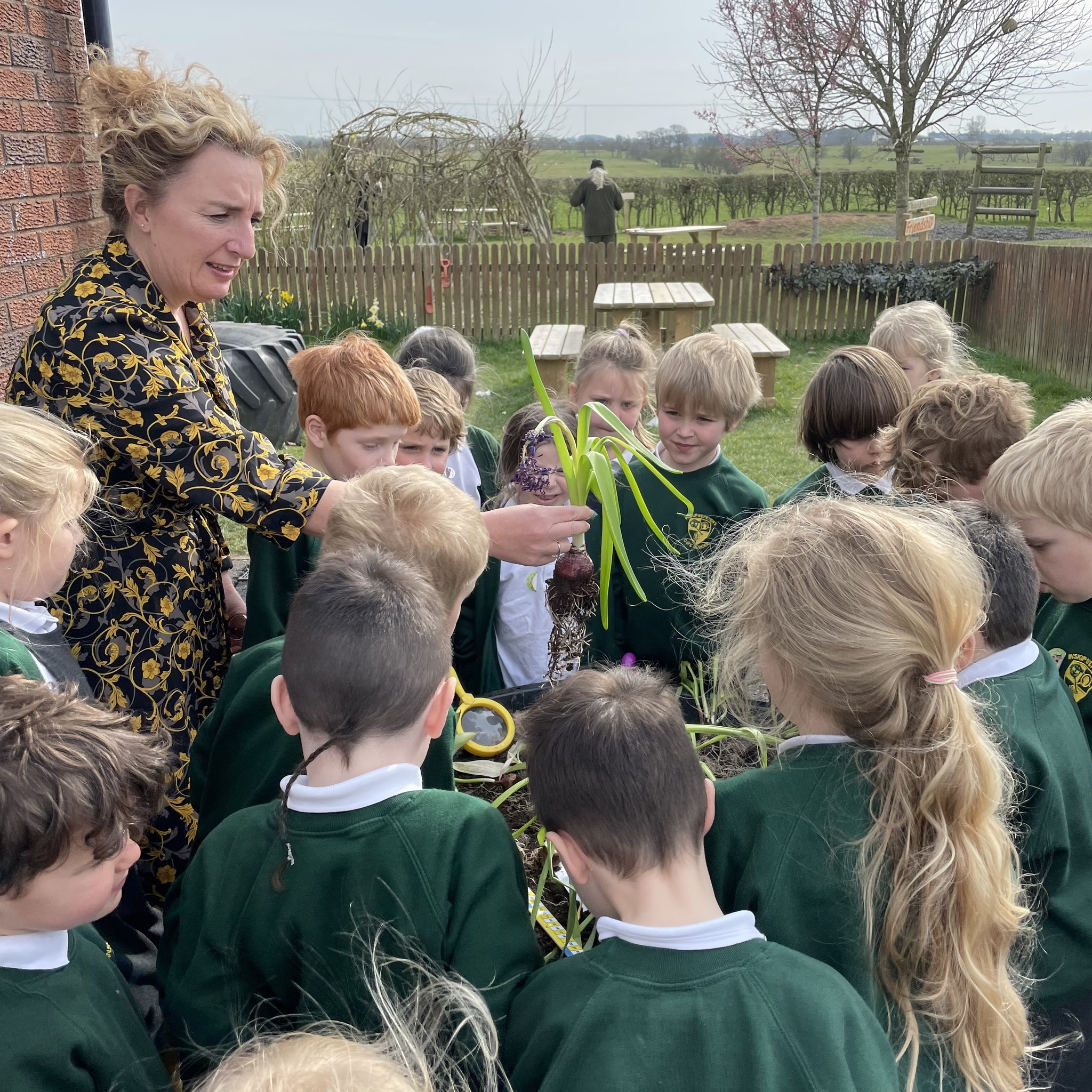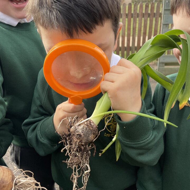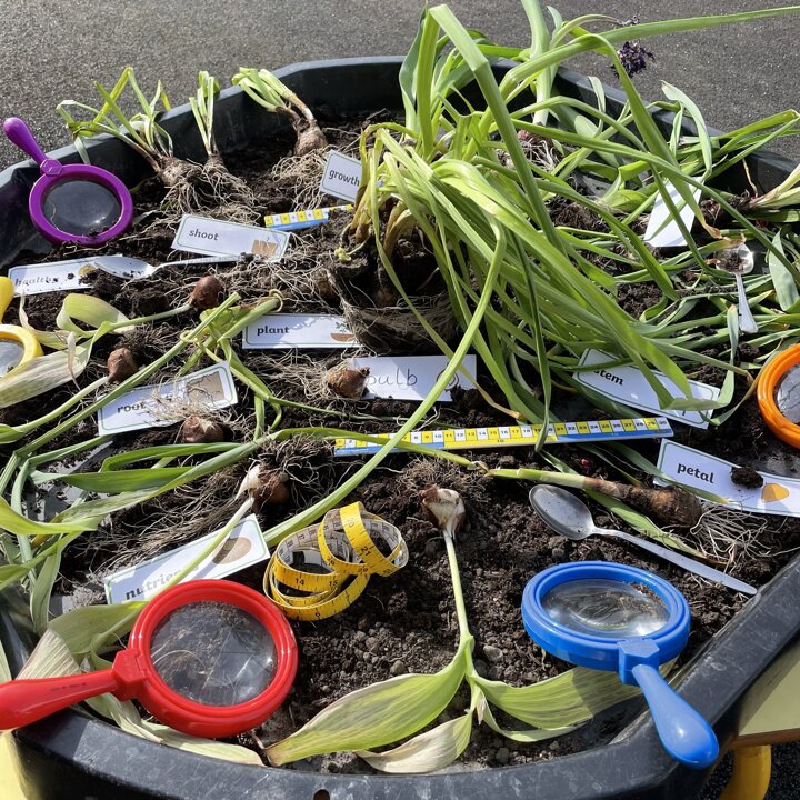 This week we took all the plants out of their pots and learnt about bulbs and how plants grow from bulbs and seeds.