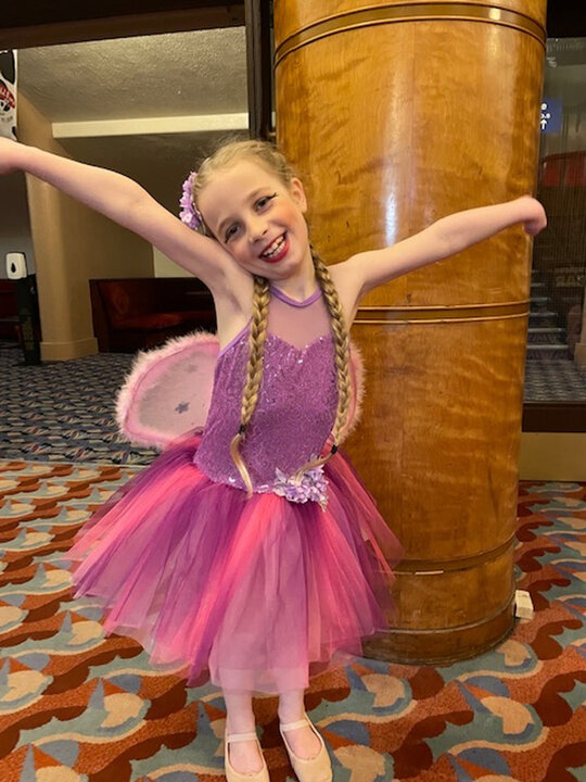"Me and Liv were partners in the ballet dance and we had different wings, I had fluffy wings because I am in Year 2 and Liv had wings without the fluff. I was excited and I was surprised because everyone was watching me, there were lots of people." says Evelyn.