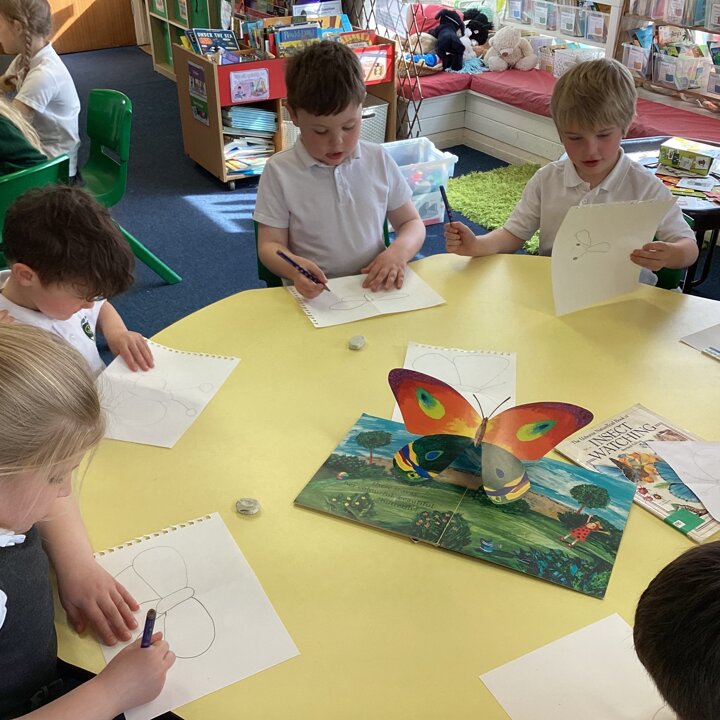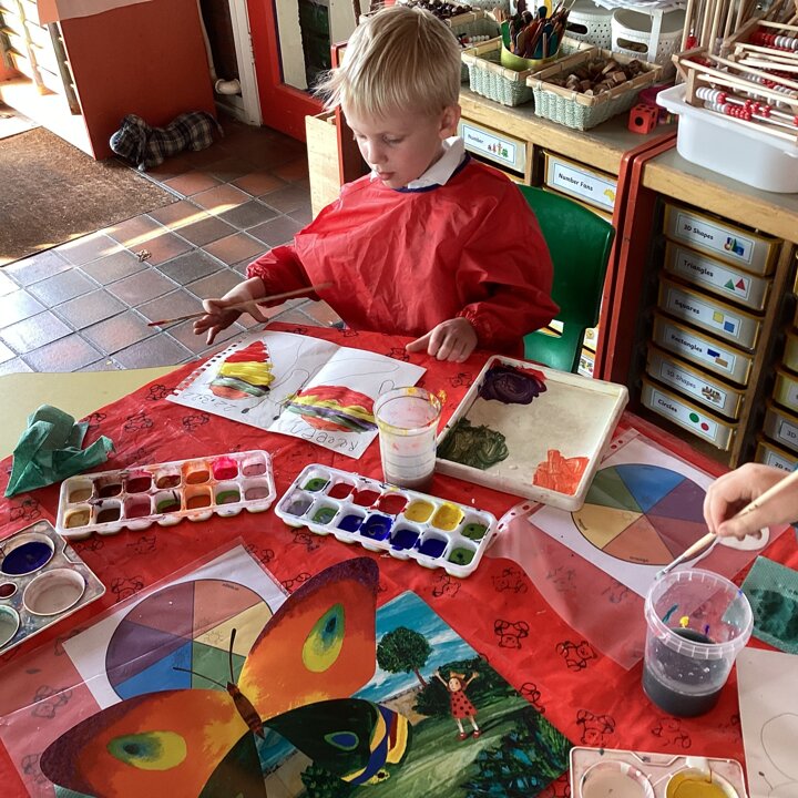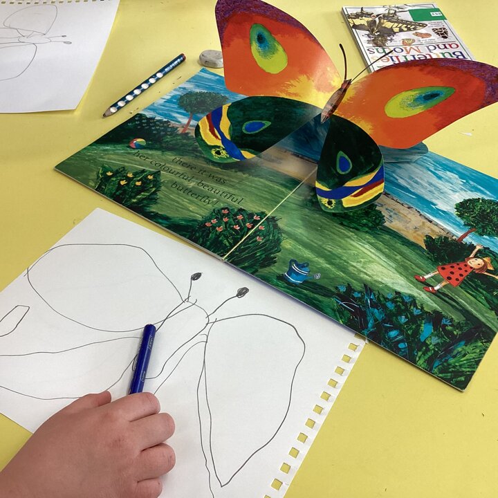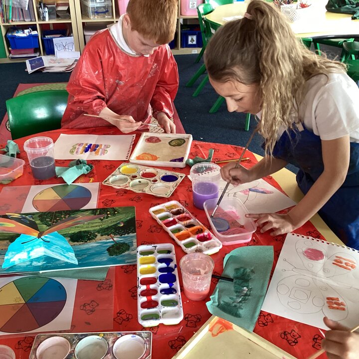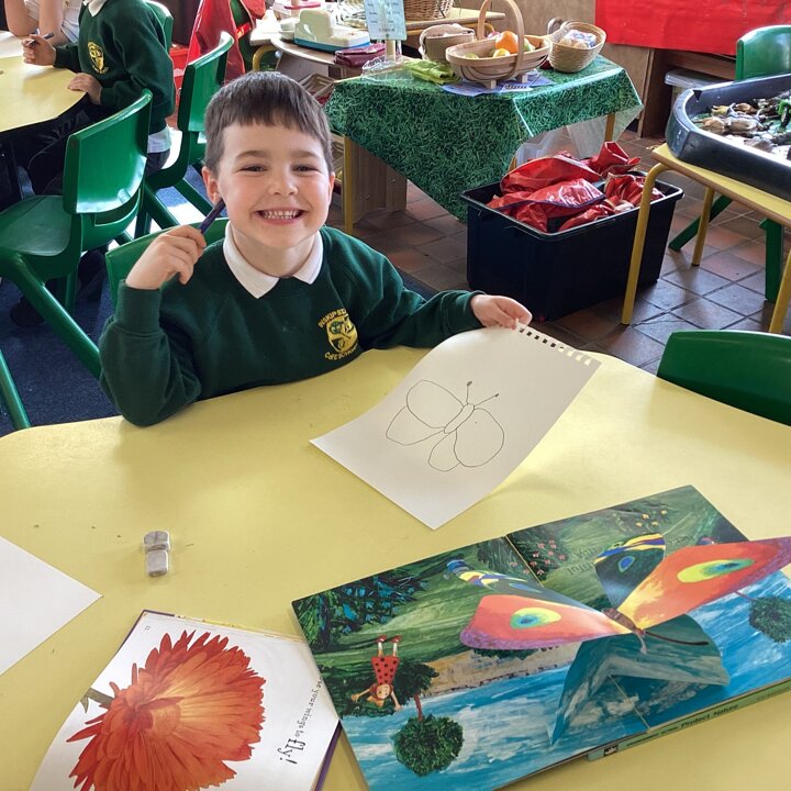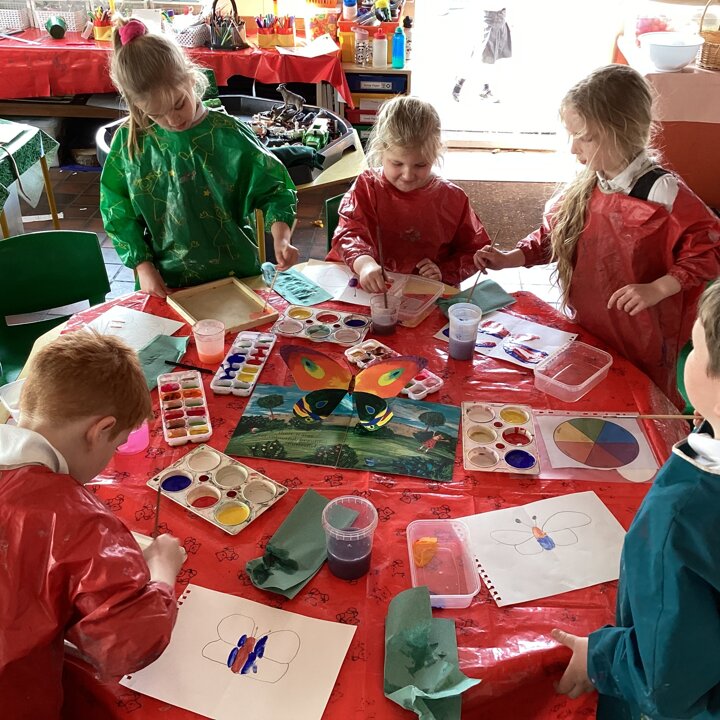 Our art topic this week learning about colour (see previous posts https://inskip.lancs.sch.uk/blog/2022-03-24-15-15-00-colour and https://inskip.lancs.sch.uk/blog/2022-03-24-15-30-17-tertiary-colours). Petr’s use of colour is fantastic, the children have been inspired by the illustrations in each book we've read so far, so I chose ‘Butterfly Butterfly’ to be the hook for our final art activity this week for the children to apply the skills they’ve learnt and it has been a great success!