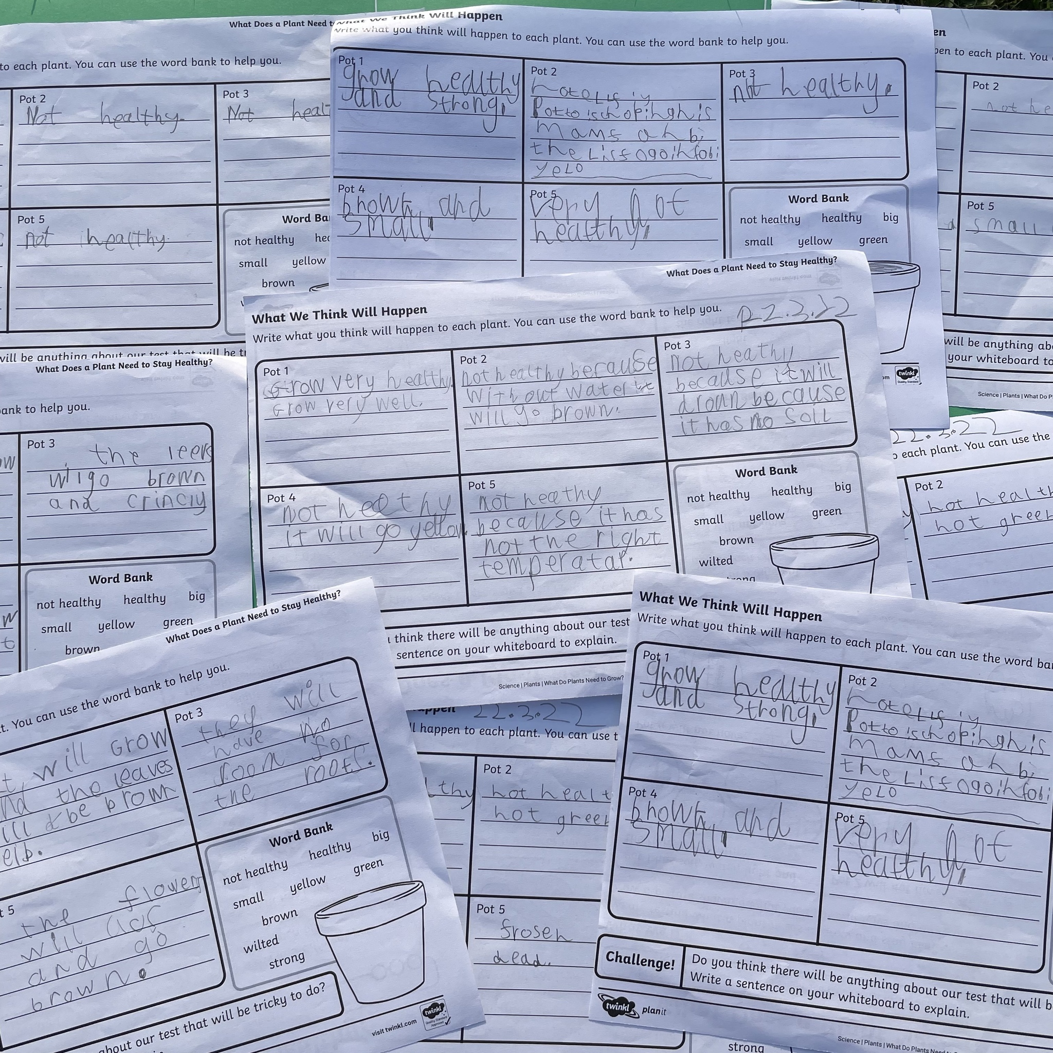 They tested their theory that a plant needs water, light, the right temperature and soil to be able to grow healthily by planting some cress seeds in pots. One pot had was given all the things they believed the plant needed to be healthy but each of the other pots were deprived of just one of the elements.