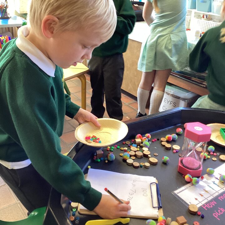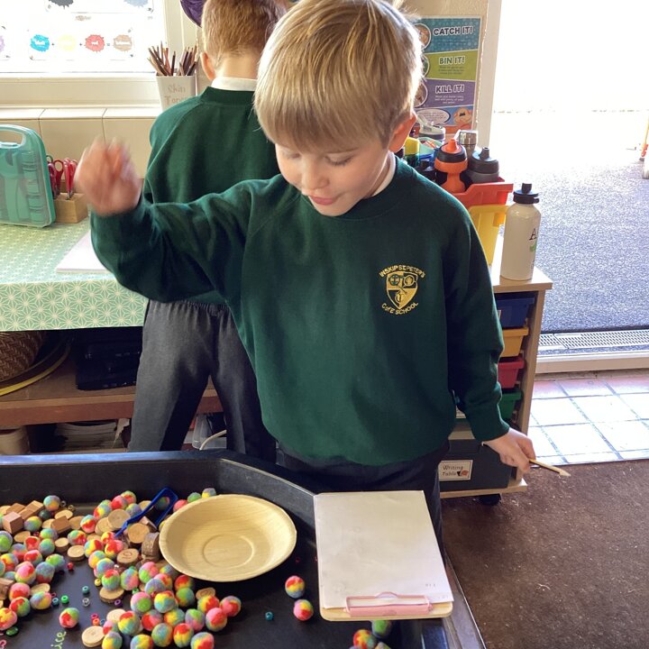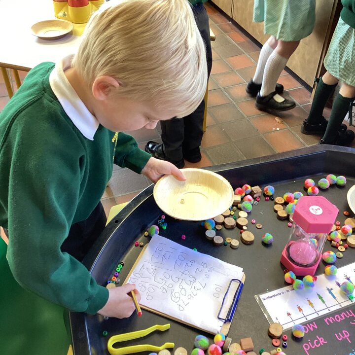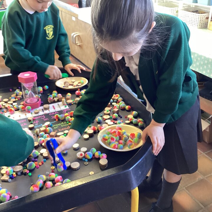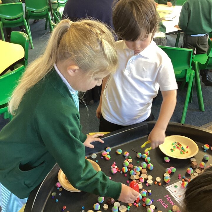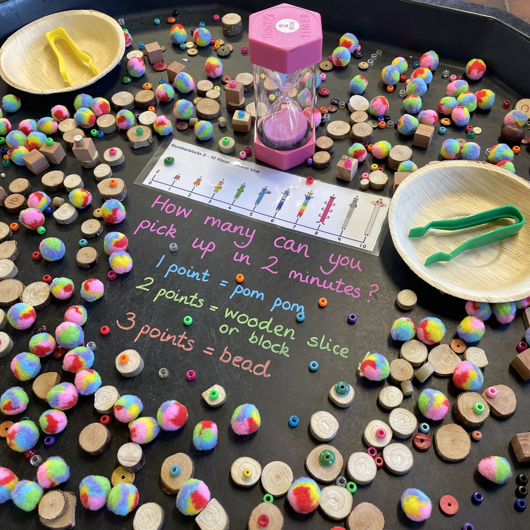 One of the childrens’ maths challenges this week was to see how many points they could earn by grabbing different objects with the tweezers in two minutes.