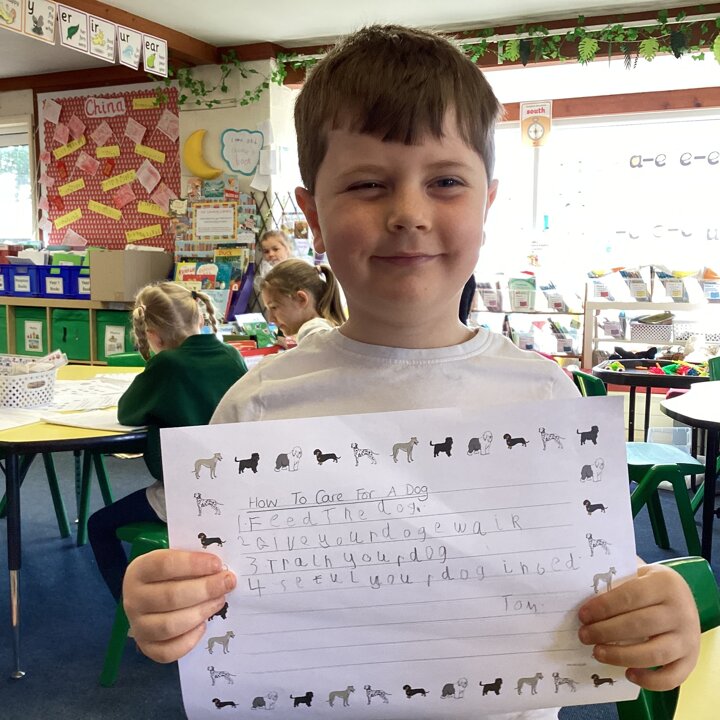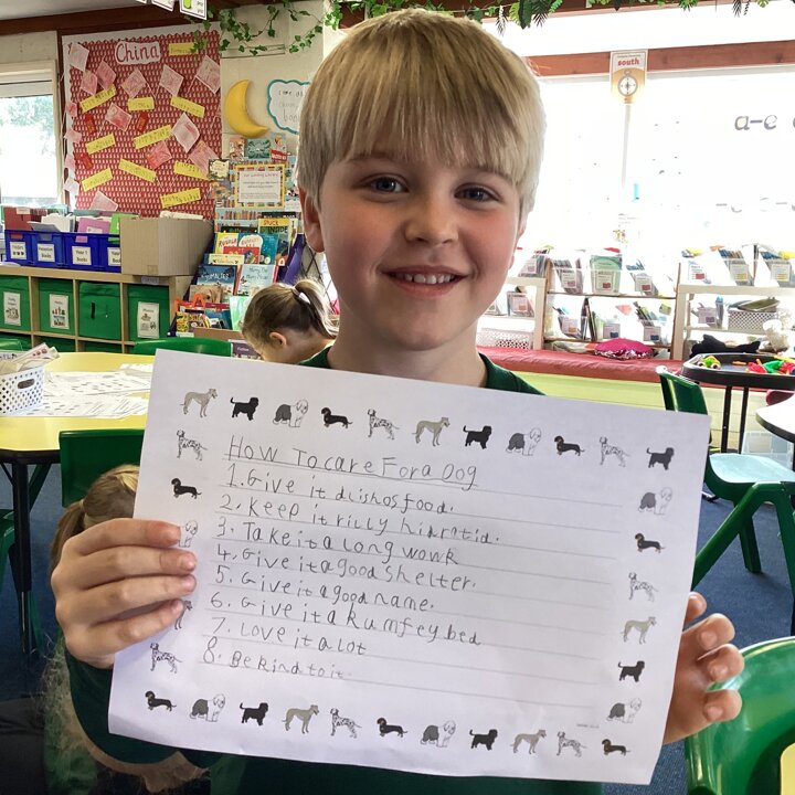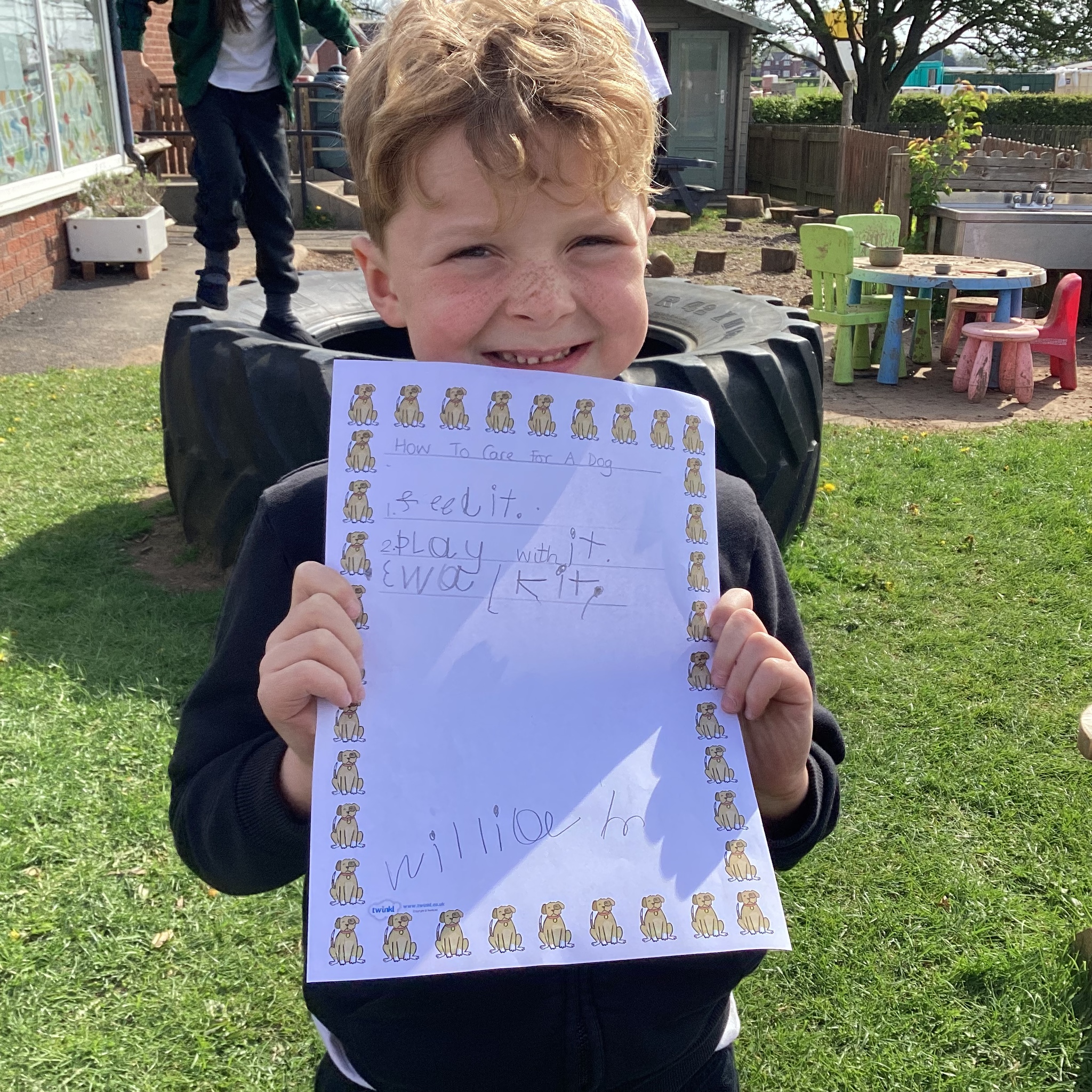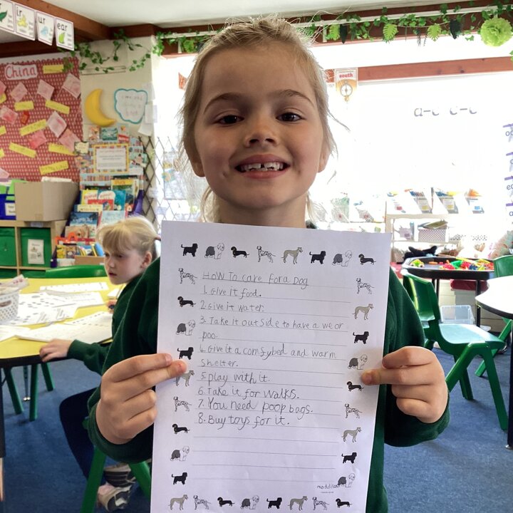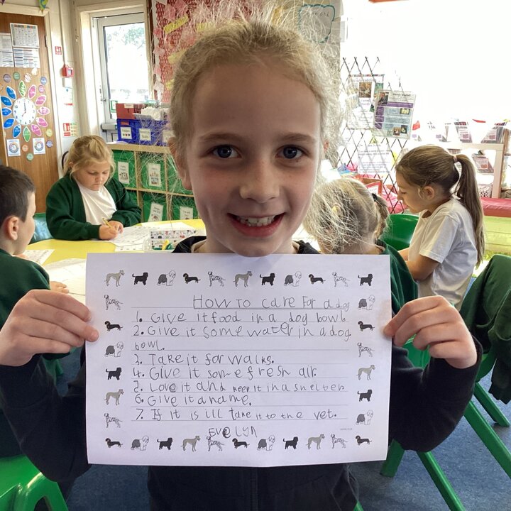 After receiving the box and accompanying letter (see the photos below) the children and I set up an Animal Shelter. We researched animal shelters and discovered what they do and read the story ‘Hairy Maclary From Donaldson’s Dairy’ to inspire the writing tasks the class then did. The Reception children had the task of organising the animals and giving the cats and dogs names. The Year 1 and 2 children had the task of writing instructions for the people who came to adopt the animals telling them how to care for a cat or a dog.