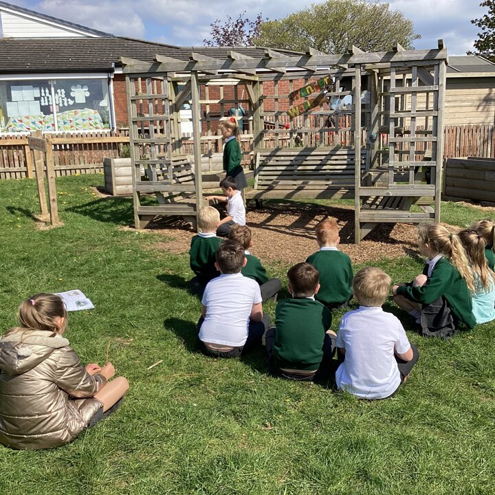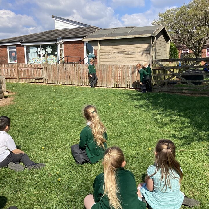 Take a look at these photographs to see their drama in action as the children used different areas of our meadow area to perform …
