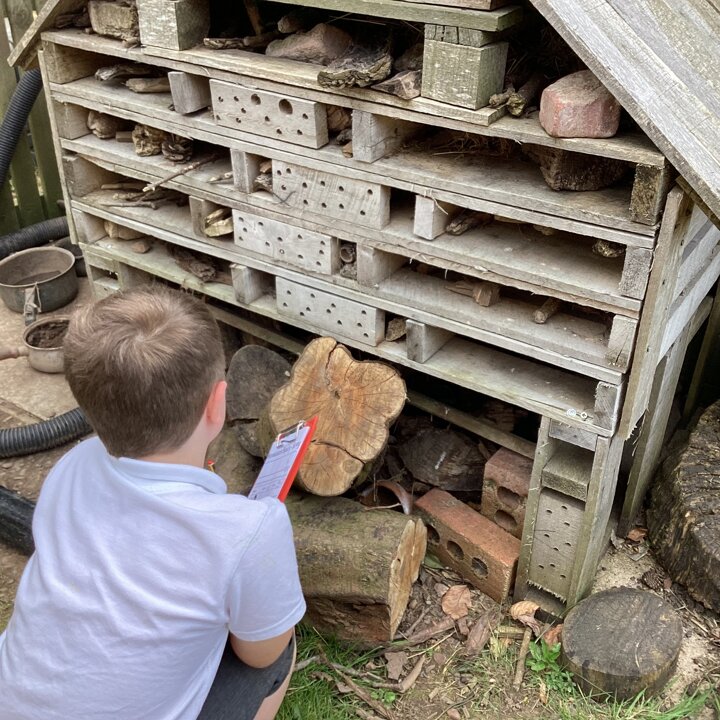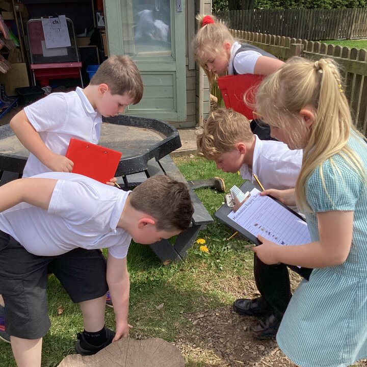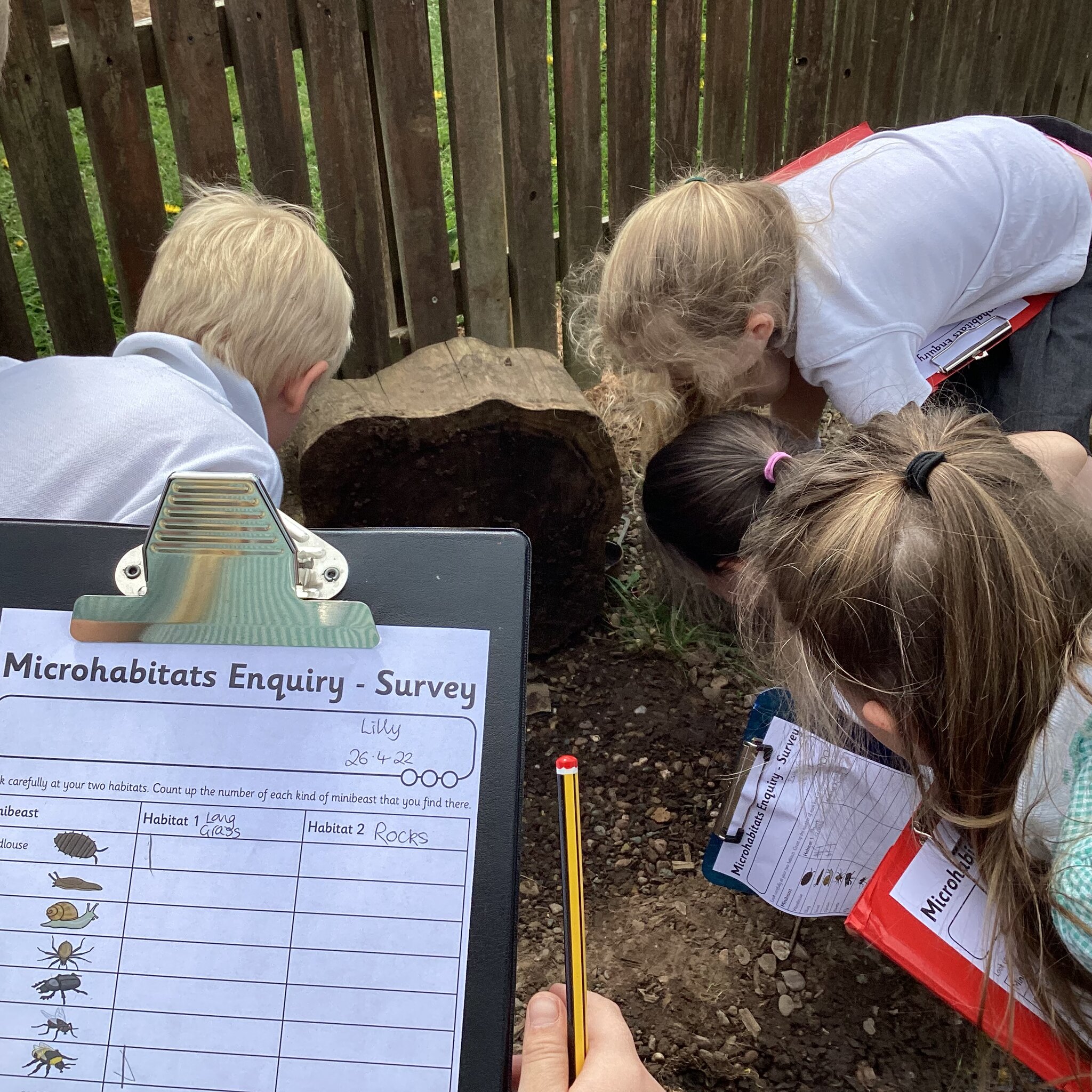 Year 1 and 2 have been deepening their knowledge of habitats after their introduction to the science topic last week https://inskip.lancs.sch.uk/blog/2022-04-24-12-45-00-habitats-and-the-natural-world by looking at microhabitats outside. The children identified six different microhabitats (short grass, long grass and flowers, rotting wood, rocks and stones, etc) and then chose two to explore. They linked their maths and science knowledge together by creating a tally chart to record the amount of each minibeast they could find in the microhabitat they were searching.