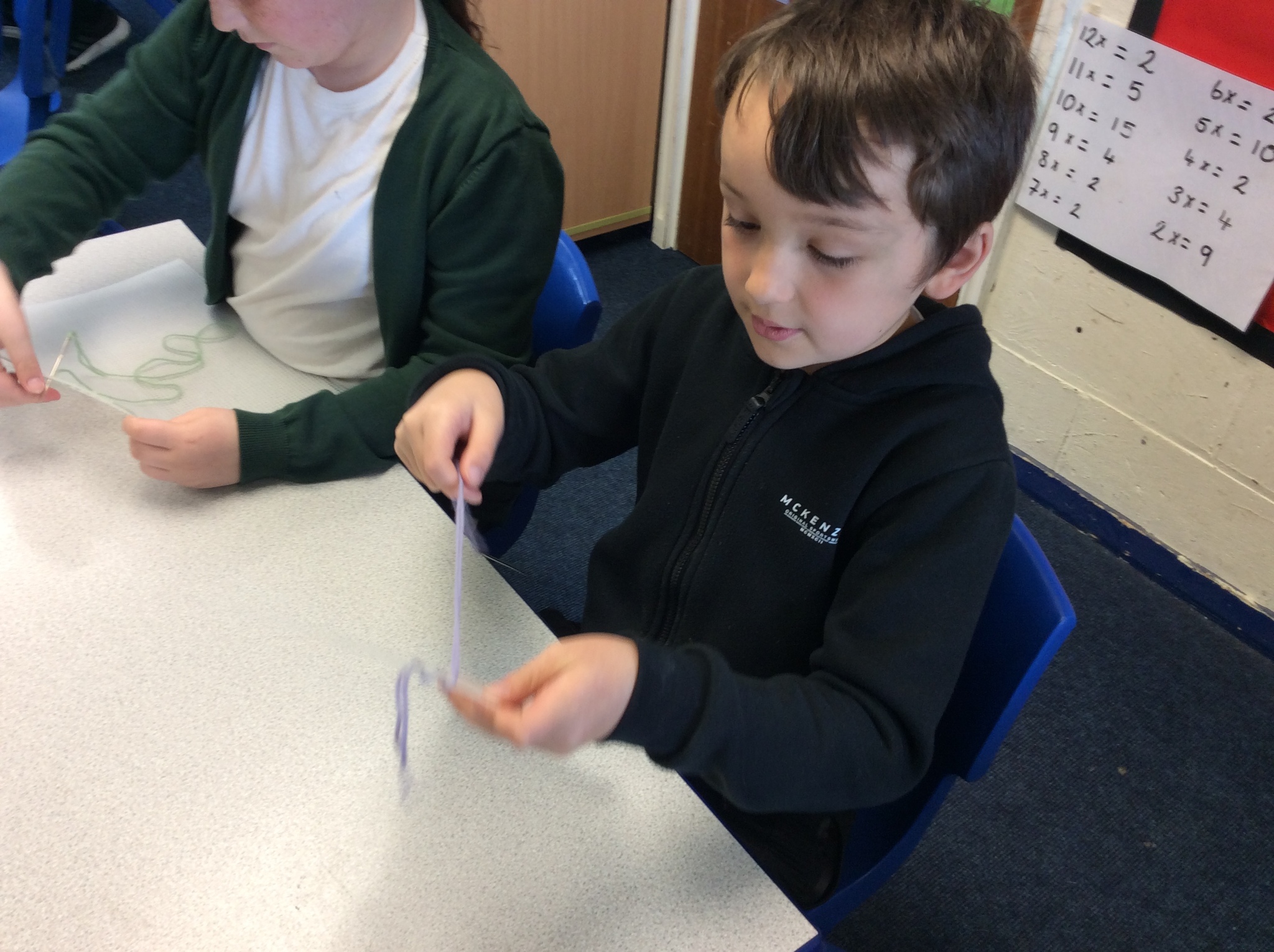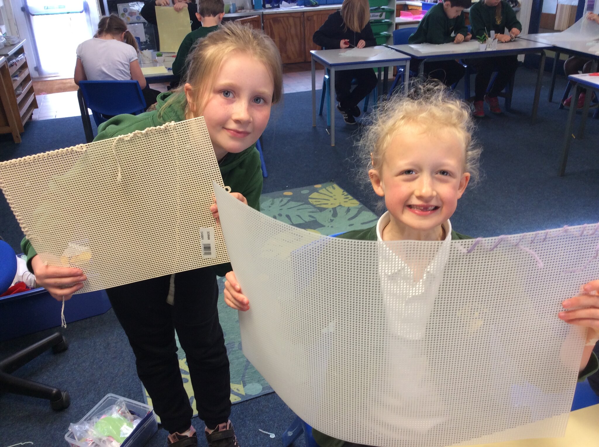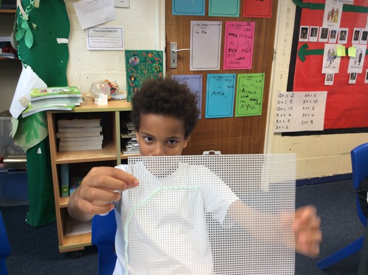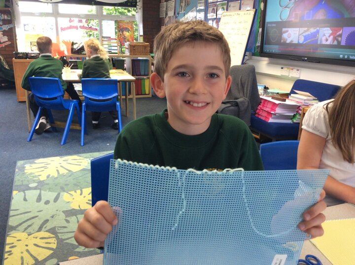 They used sewing boards and thread to create patterns and practice some of the stiches we may end up using for our projects.