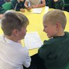 This morning, Upper School braved the bracing wind to complete a maths competition that I set up around the school field. There were 29 maths challenges hidden all over the grounds and they worked in pairs to find them and try and answer the questions correctly before they could go and try a different challenge. There were money and measures questions, real life problems to solve through adding, subtracting and multiplying.