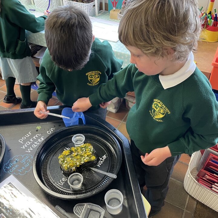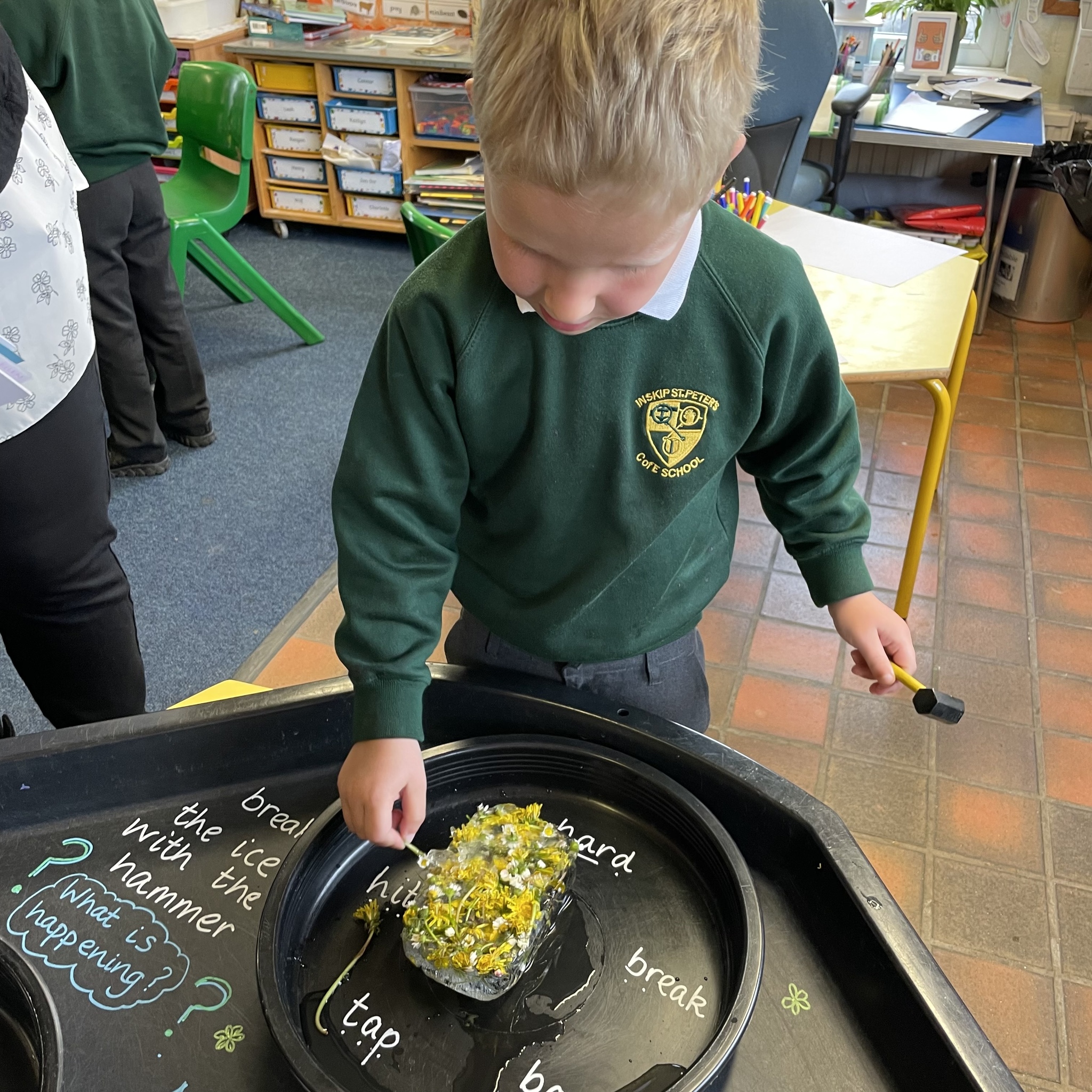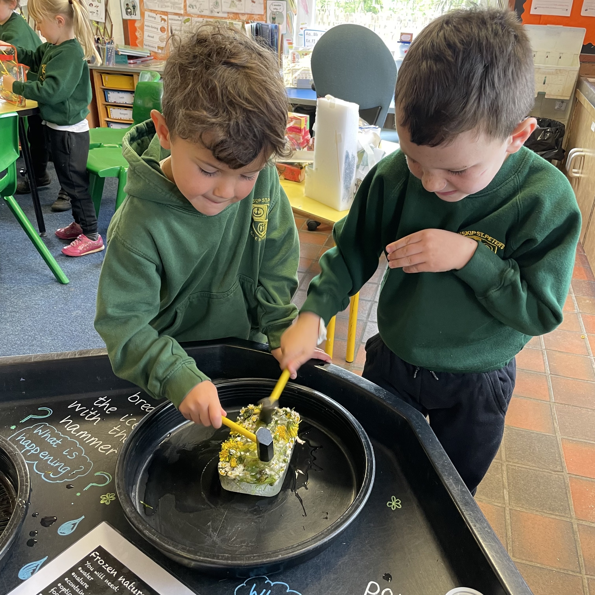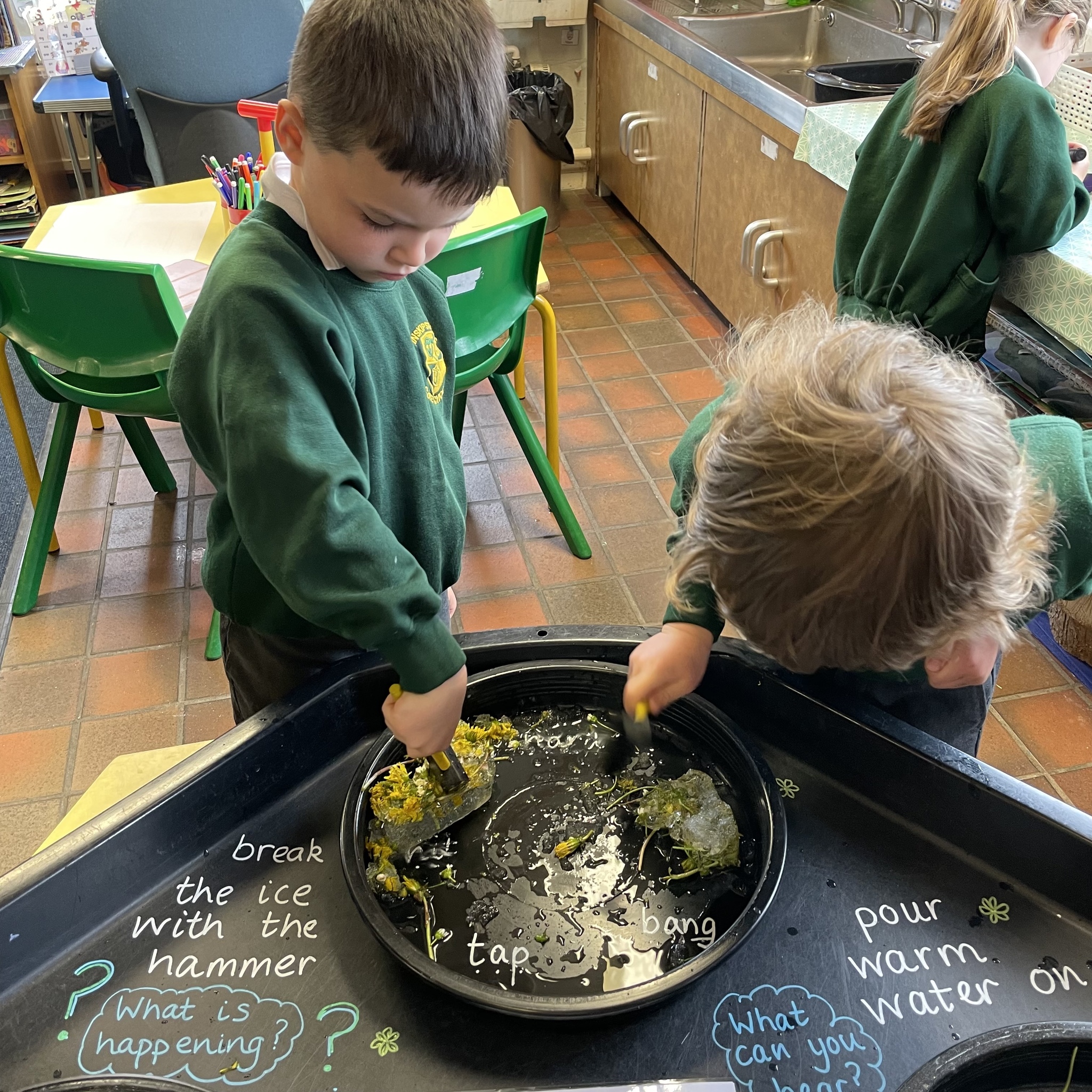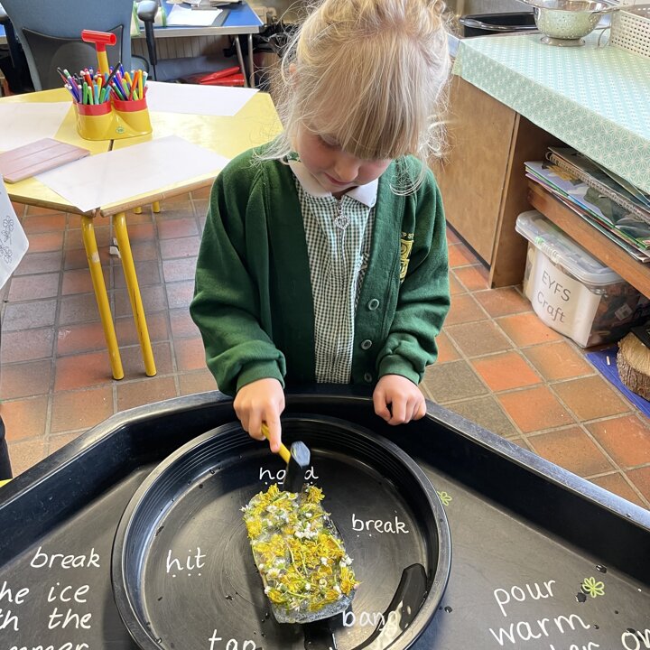 Our Reception children have had fun with this activity this week when they tried to free the flowers they’d picked from the ice!