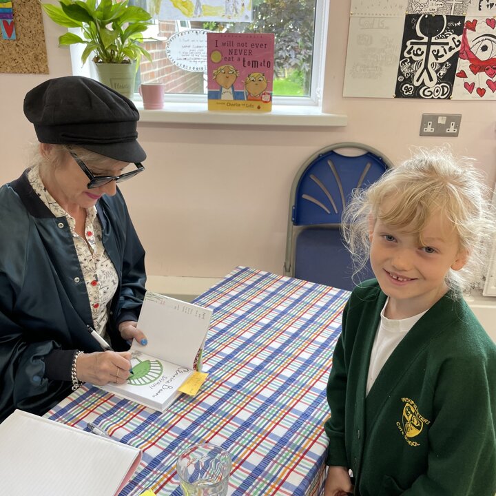Wow, wow and wow! We had an absolutely amazing morning on Friday when Lauren Child came to talk to us. Lauren talked about all her books, how she writes them and how she creates the illustrations. It was fascinating.