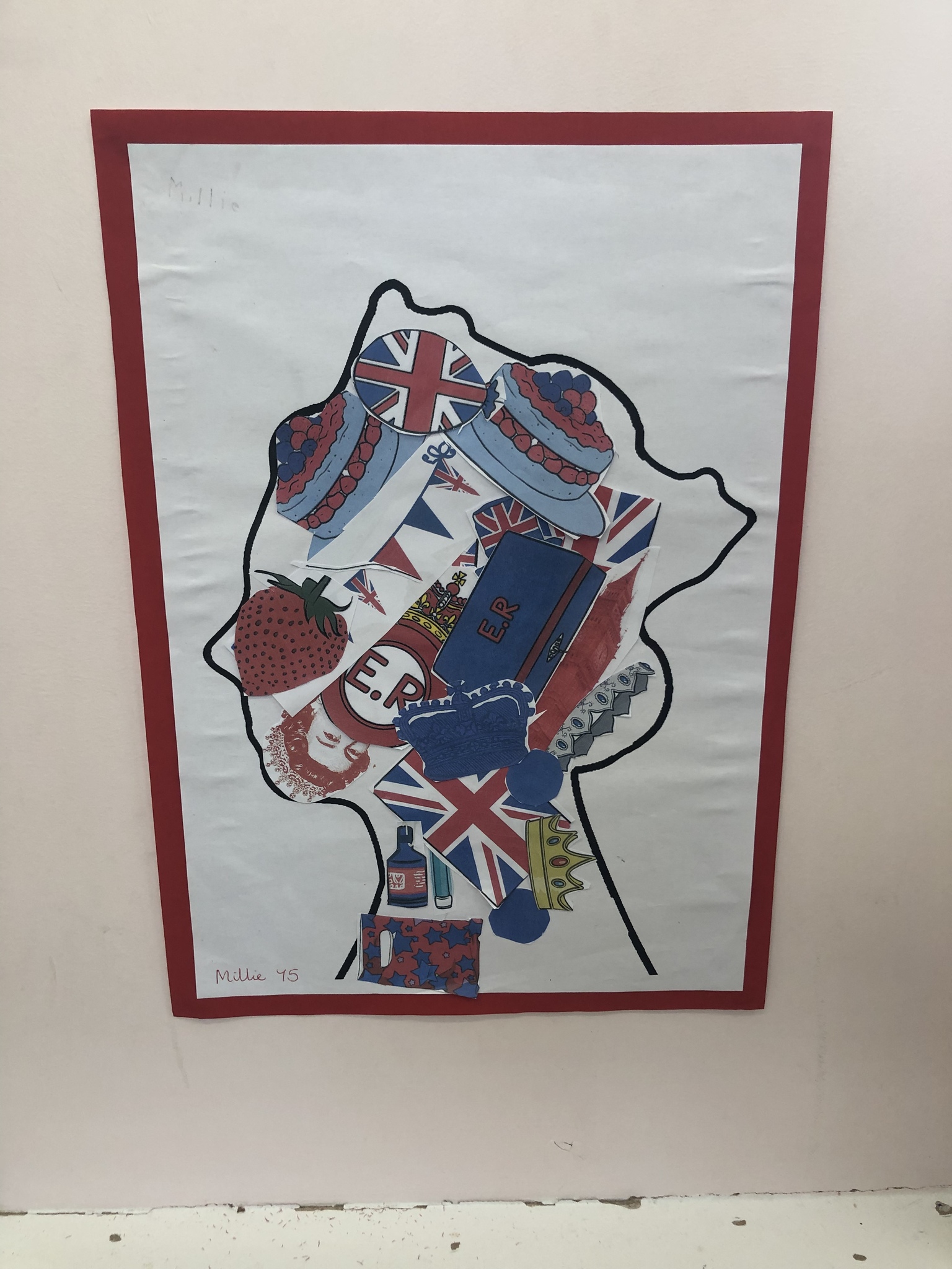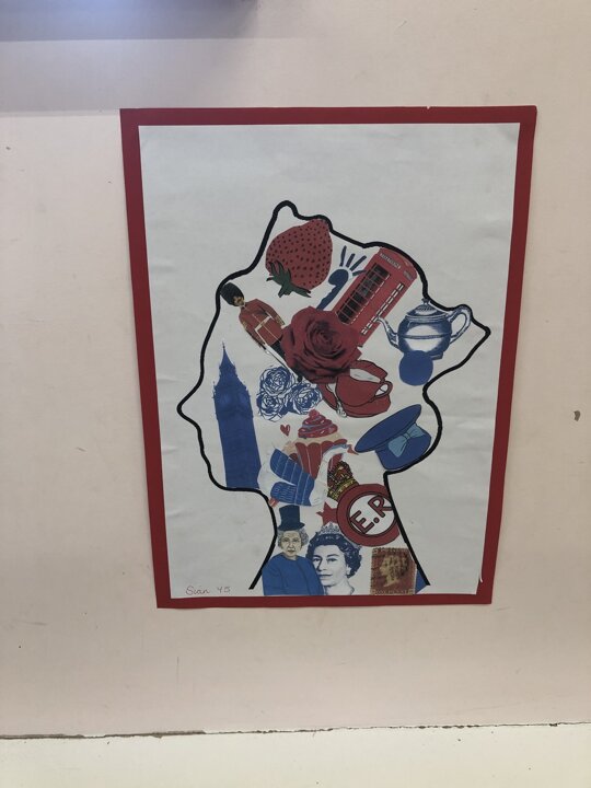 Upper School have worked hard to collage the outline of the Queen’s head with all things British! Their brilliant artwork is now up in the school hall ready for the Jubilee celebrations tomorrow!