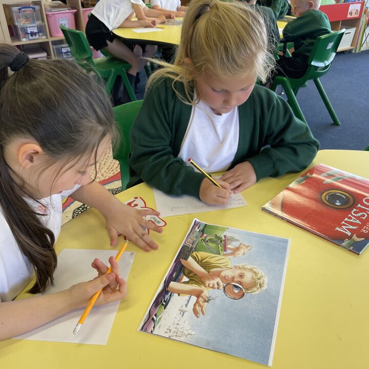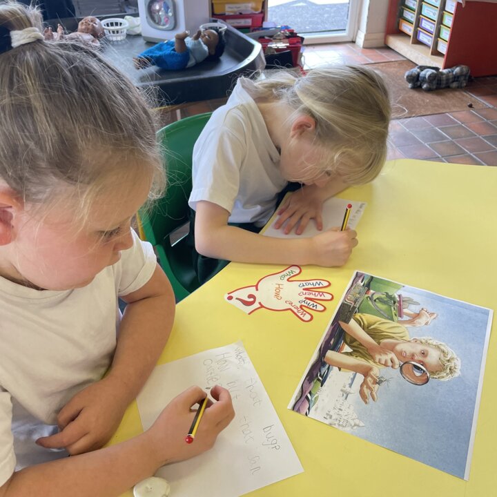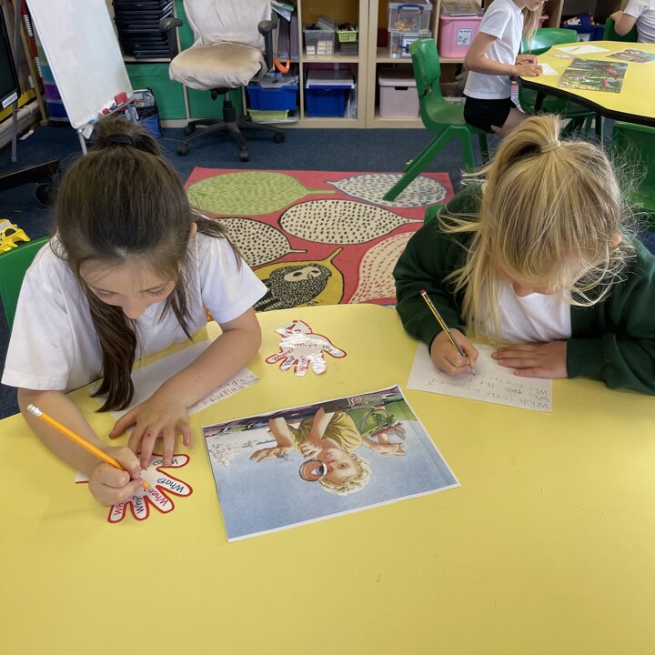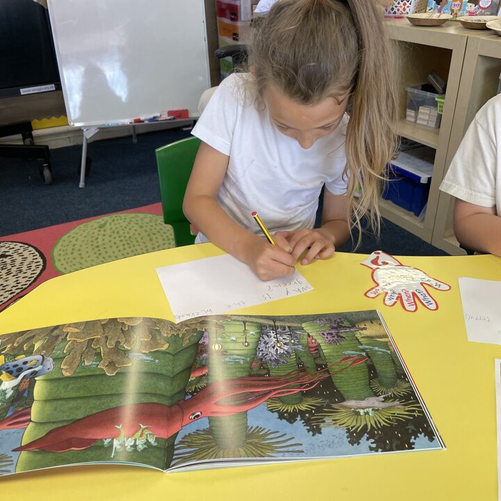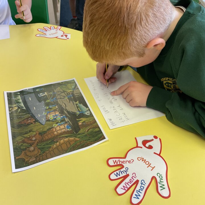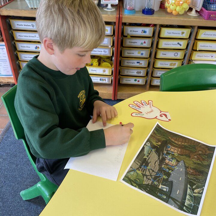 Also this week the children looked closely at the fantastic, wordless, picture book called ‘Flotsam’ by David Wiesner. After lots of discussion the children practiced composing questions by writing down questions they had about different images in the book.