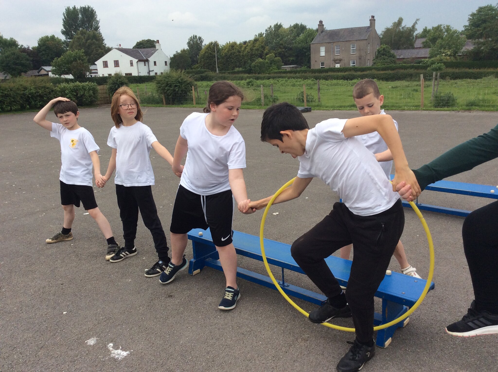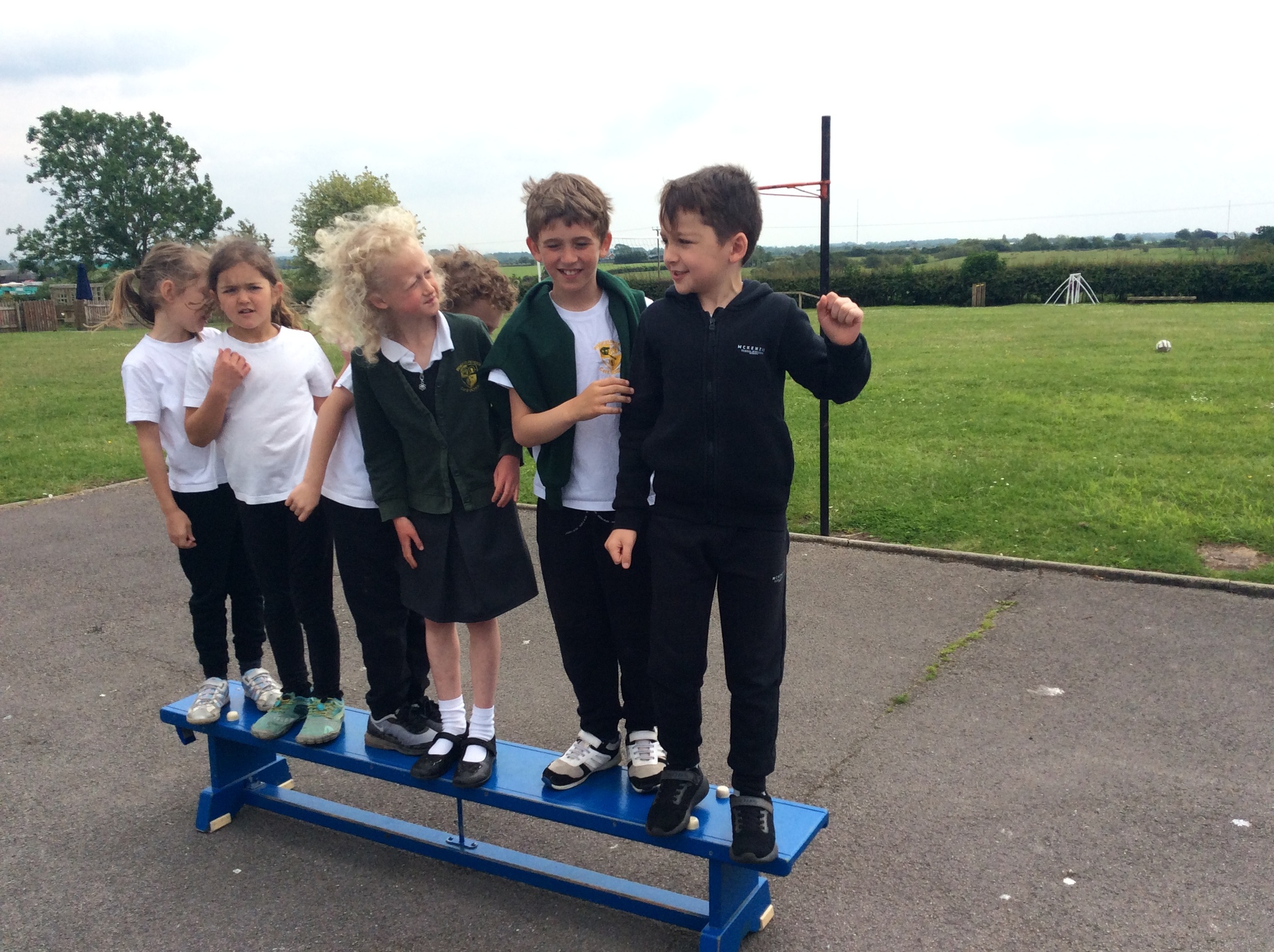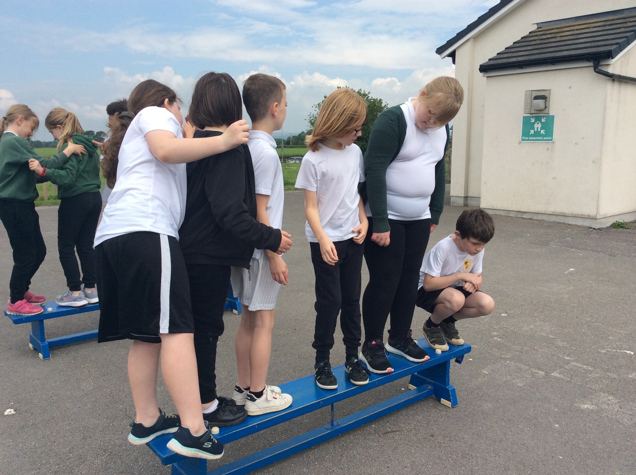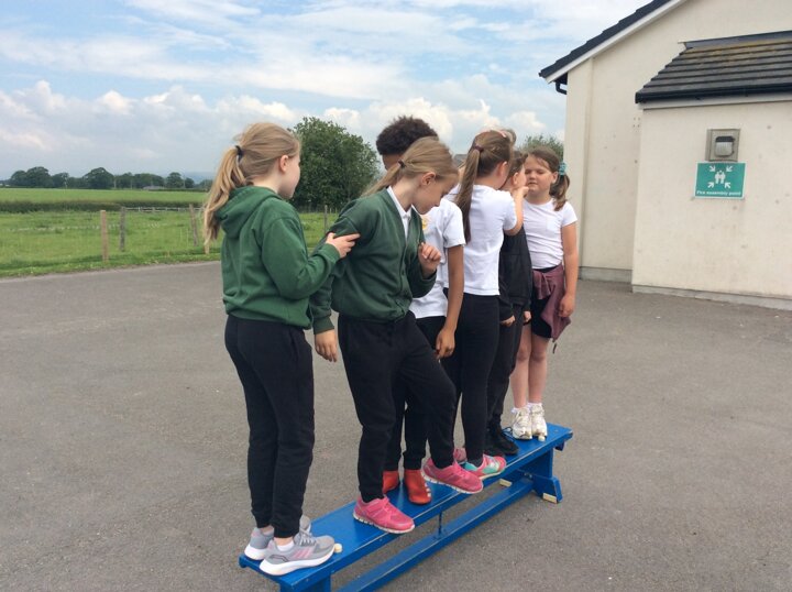 These games included sorting ourselves into order on a bench, passing a hoop over the whole team in a line and trying to balance in an increasingly small circle.