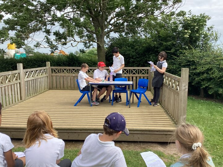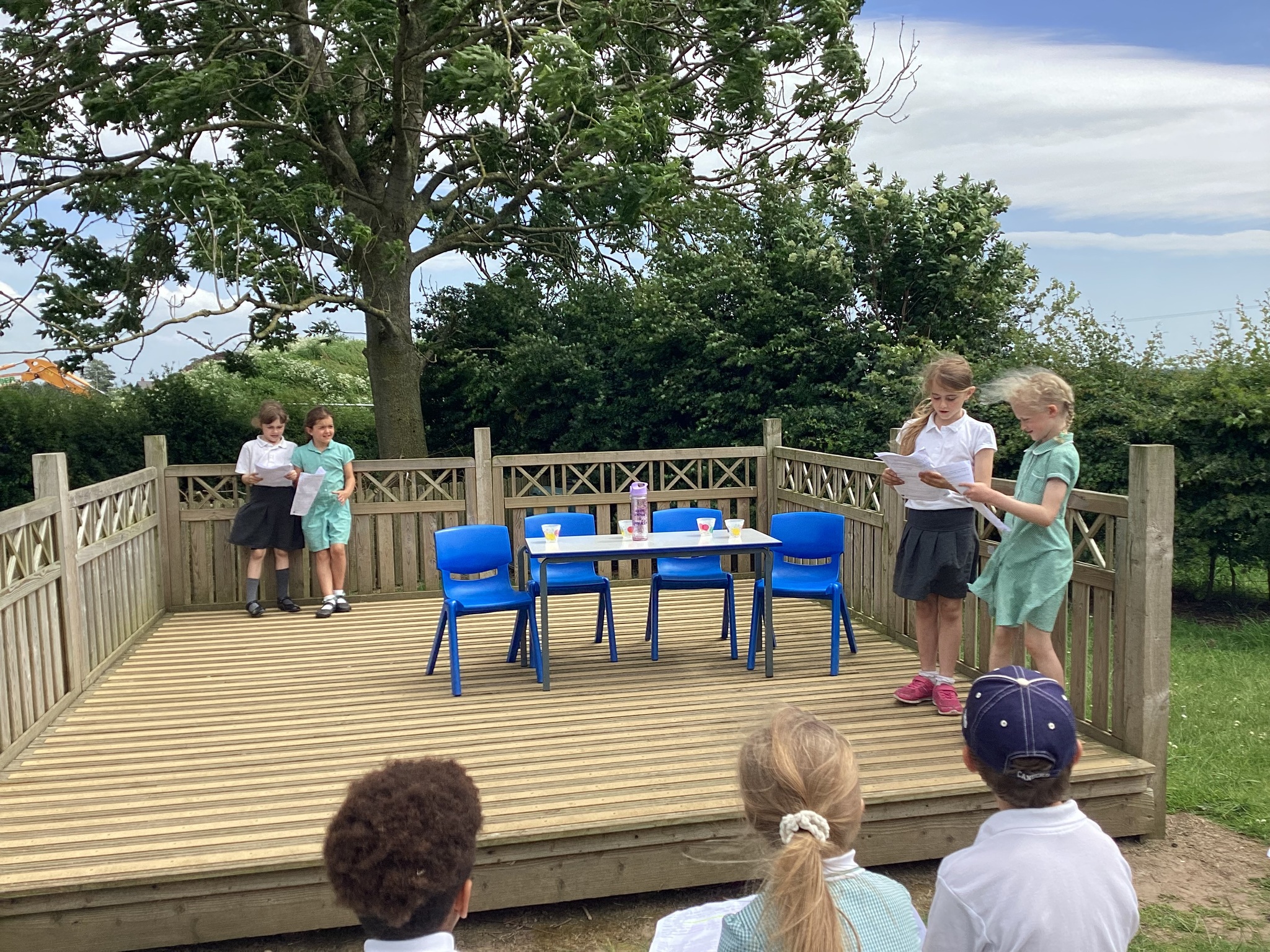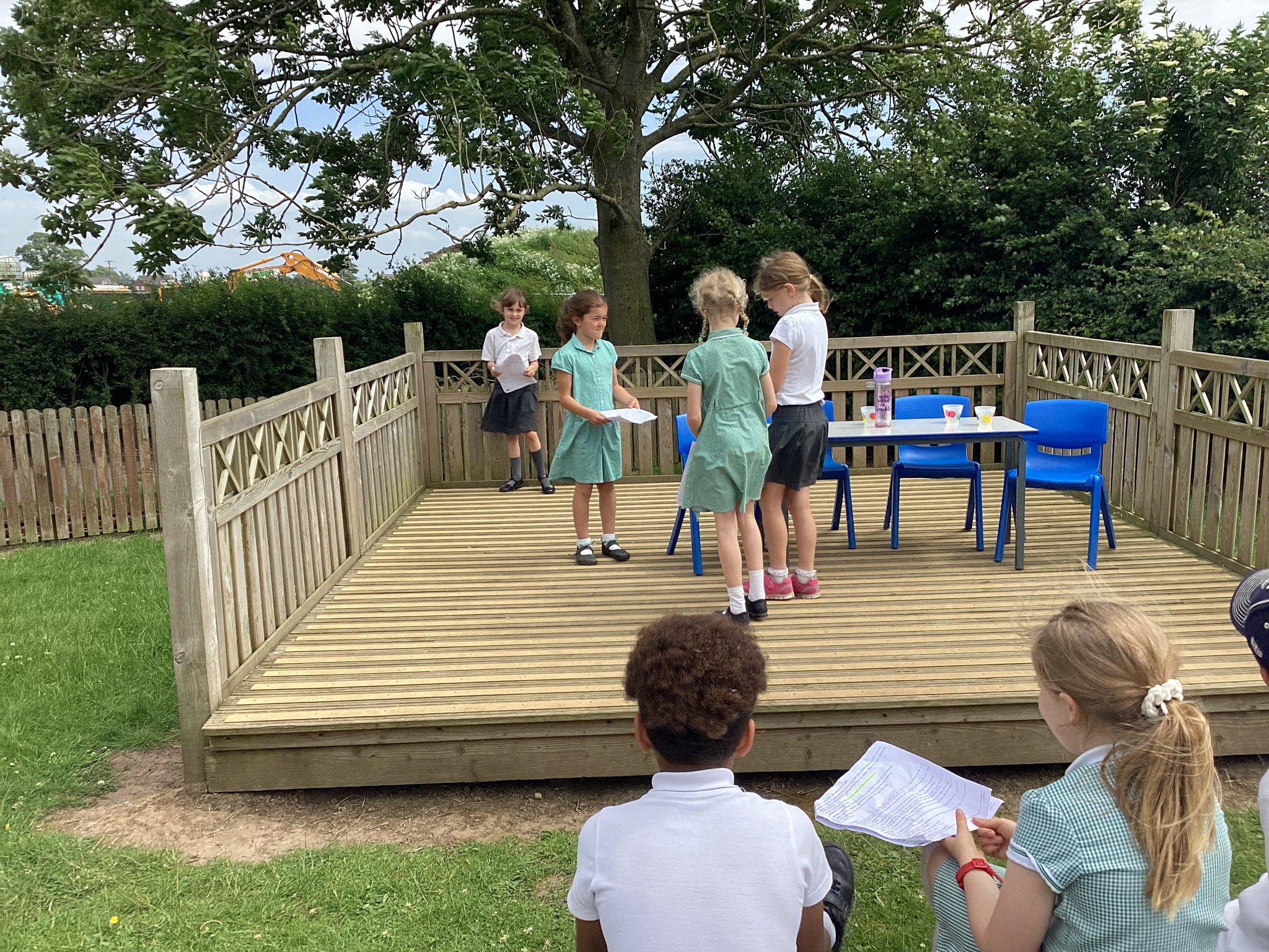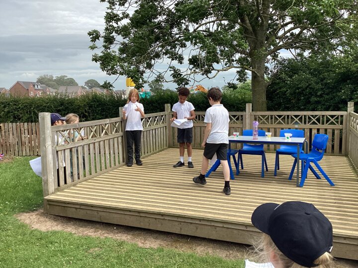 Children only had a short time to practice, but did excellently with incorporating props, acting out their lines and using the correct tone to speak.