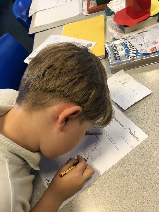 Next the children came up with their own design specifications for a Mars rover and drew ideas of what their design should look like. They had to include moving parts where something would turn, move up and down or use gears.