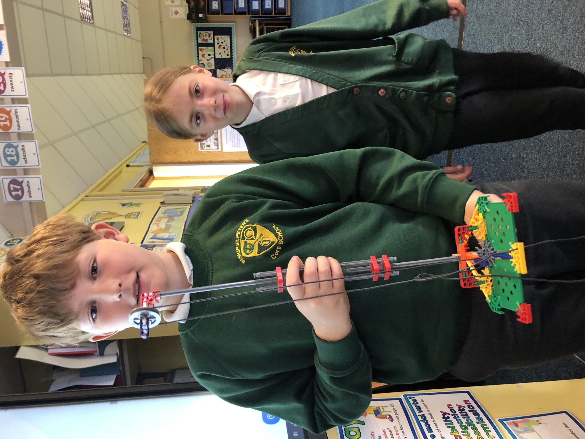 As part of our D&T work, the children have had the opportunity to explore and create mechanical models using Lego and K’NEX. They used levers, pulleys and gears to give movement to their models. Iain and Thomas even added a motor to their gear system to be able to pull things along.