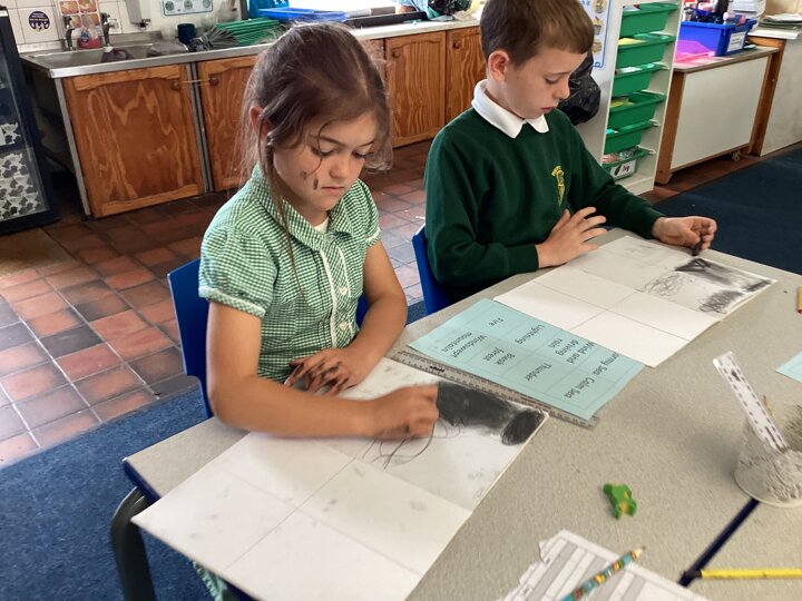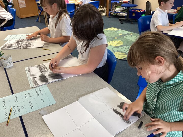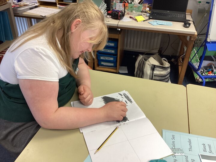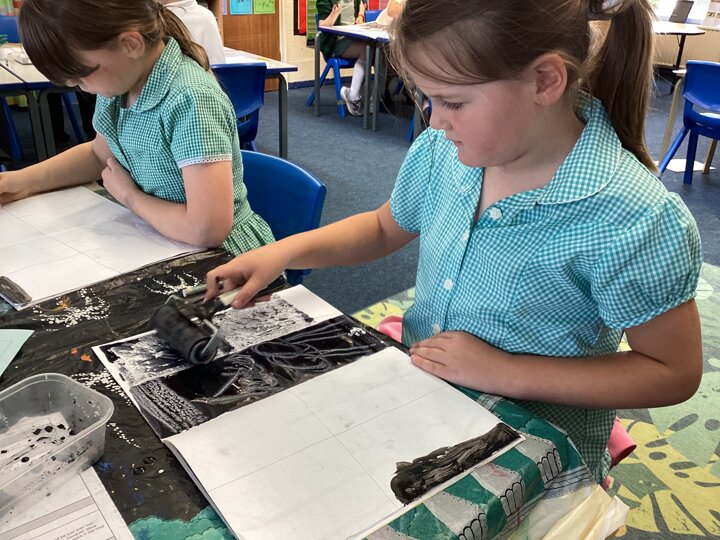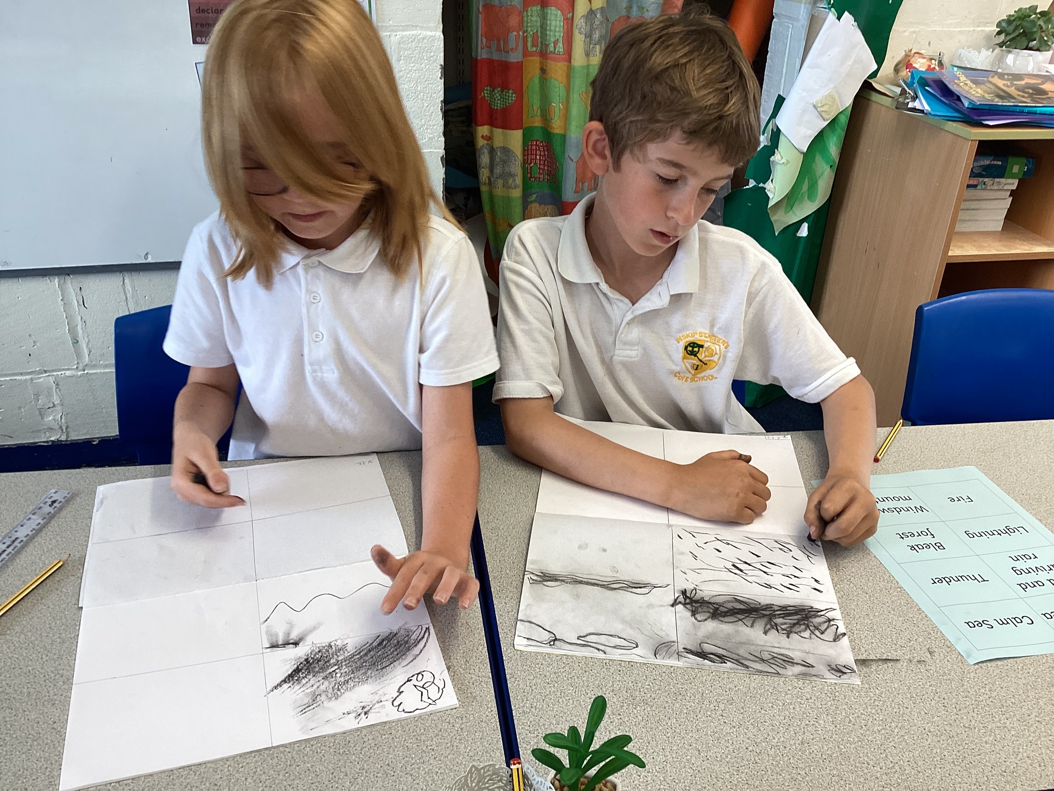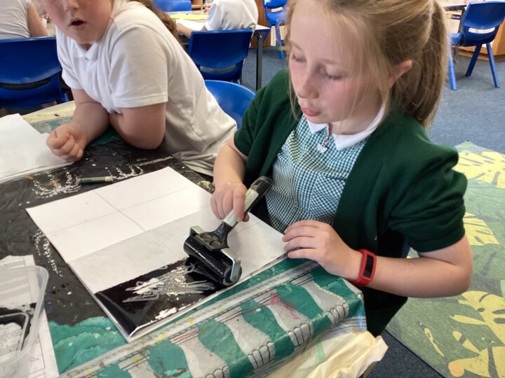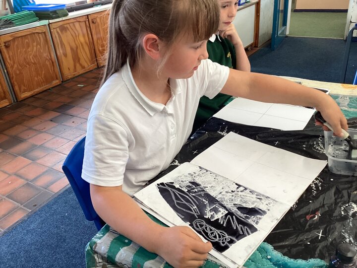 Children have so far enjoyed many artistic techniques including ink rolling, painting and scraffito inspired pages. They have been focusing on the texture and emotion behind pictures as well as how we can turn words into images.