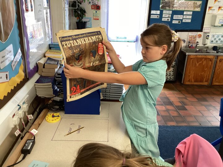 To fit into our 'ancient civilisations' topic, children have been learning all about Ancient Egypt. We have focused on some primary sources including the pyramids, artefacts and hieroglyphs already. This week, children looked at secondary sources including books, posters, recreated images and newspapers.
