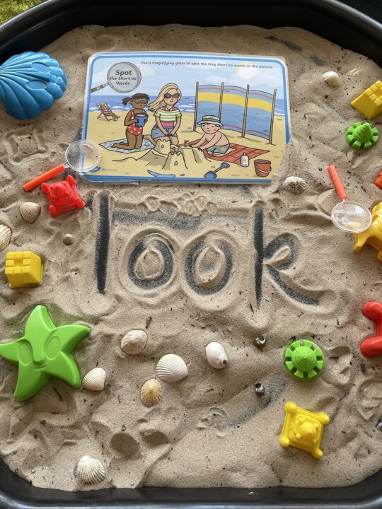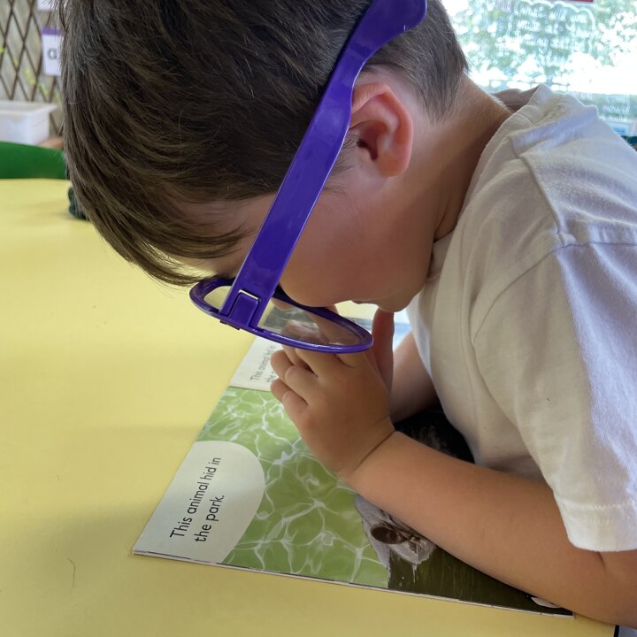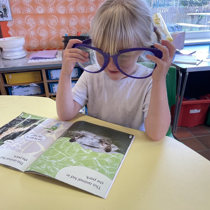 Wearing the special magic tricky word spotting glasses in guided reading activities