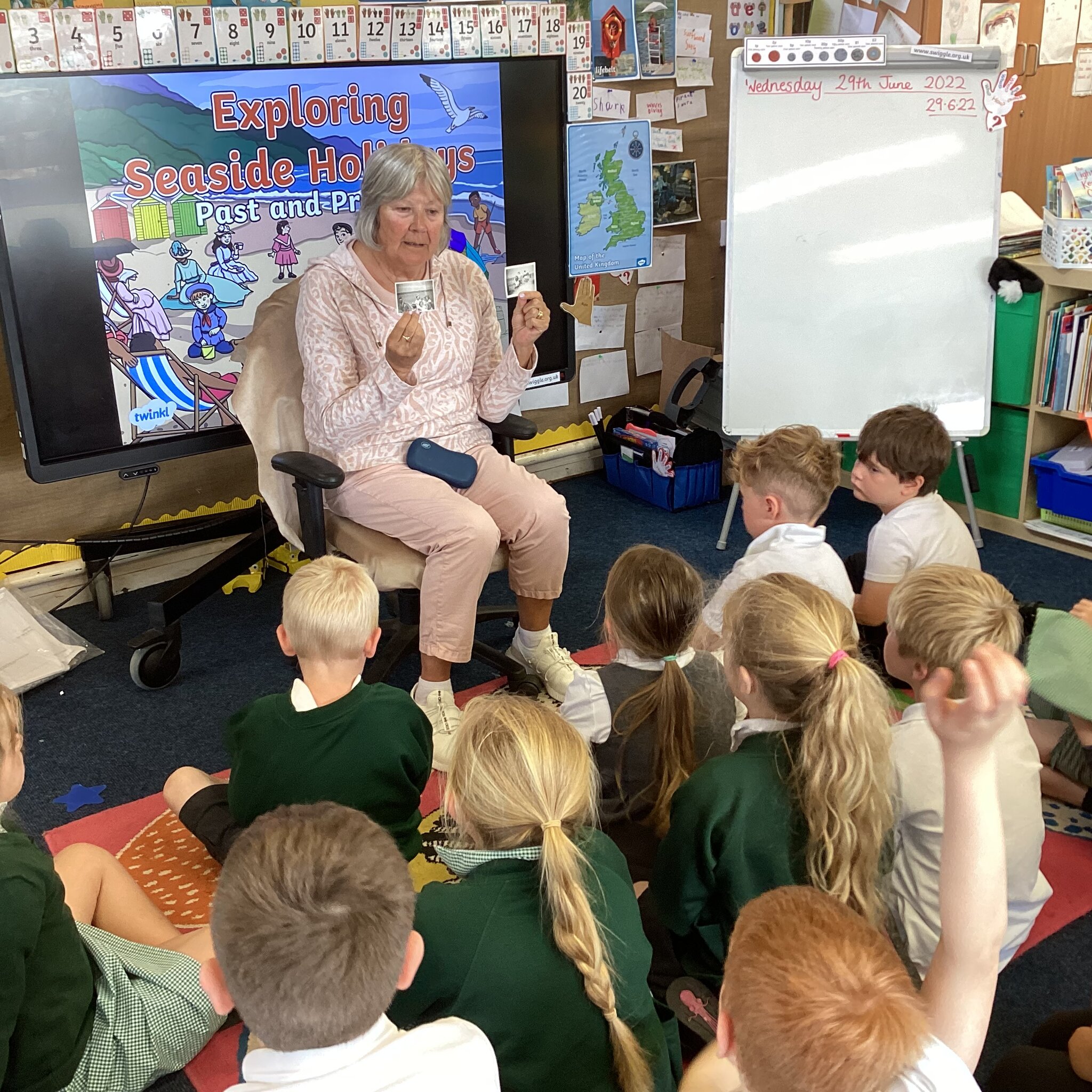 Mrs Cadwallader brought history to life for us last week by bringing in two photos of herself on holiday at the beach when she was a little girl. I was so impressed by our children’s knowledge as they applied what we had learnt a couple of weeks ago (have a look back here https://inskip.lancs.sch.uk/blog/2022-06-18-16-39-16-seasides-now-and-then) when they asked questions about her holidays.