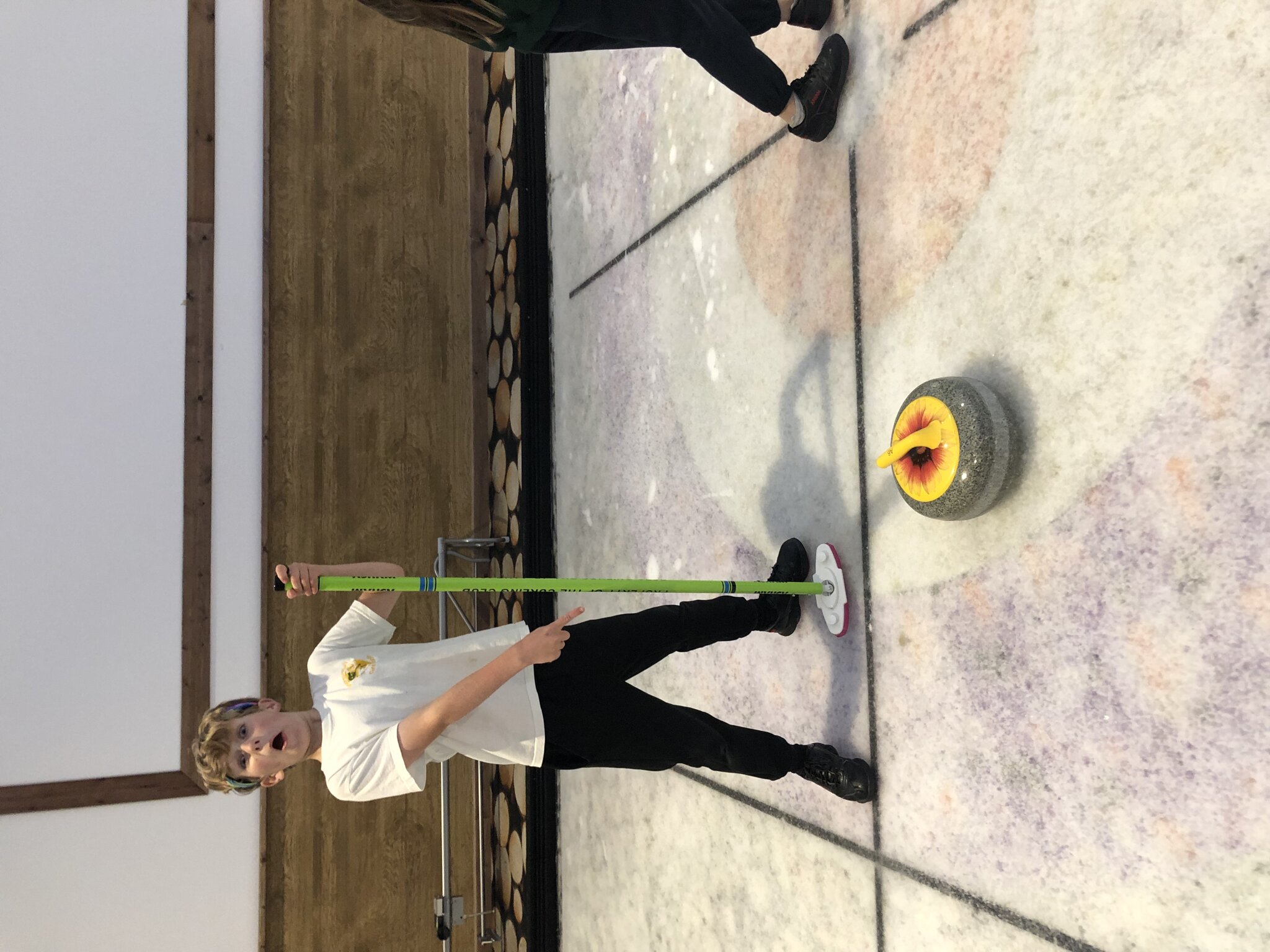 On our final week at the curling rink, Upper School enjoyed playing in teams of three against each other. One player was ‘skip’, one was a ‘sweeper’ and one throwing the stones. The success rate was much better this week with many of the children’s shots going into the ‘house’ (target). The competition was fierce with much shouting and tactics being discussed!