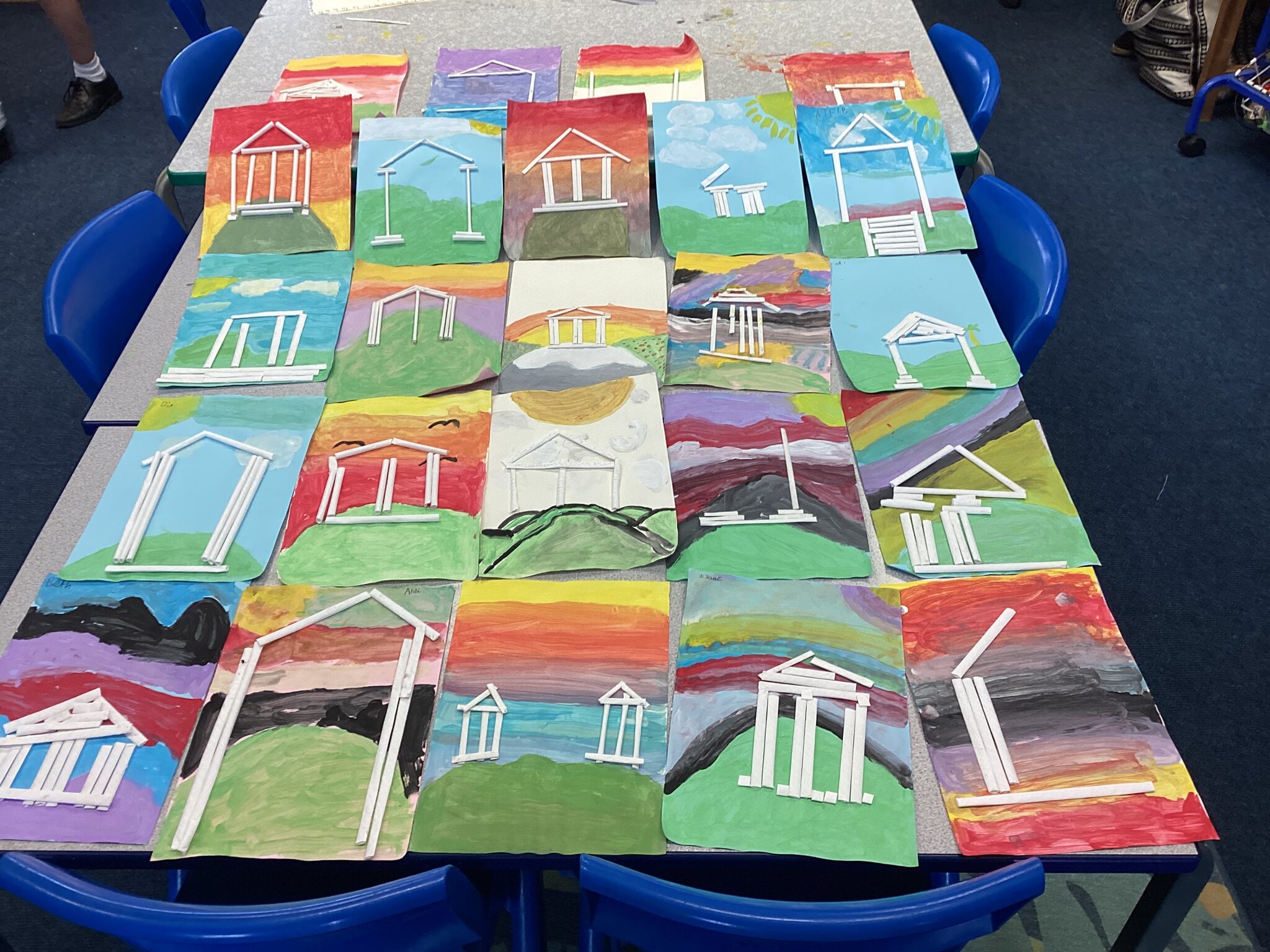 In the afternoon we looked at some of the Ancient Greek architecture that still exists today and compared it to 3D renderings of what it may have looked like in the past. We used this to create our own Greek buildings out of art straws that sat on top of a beautifully painted sky.