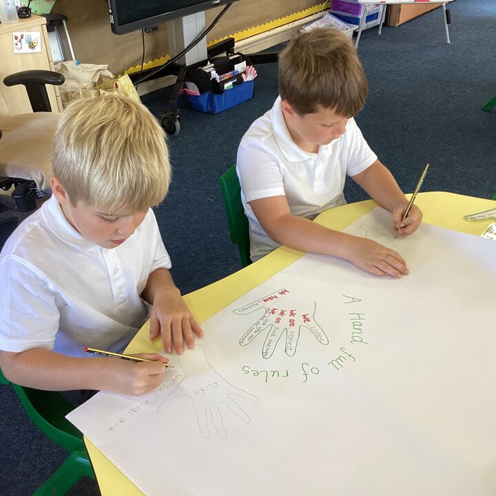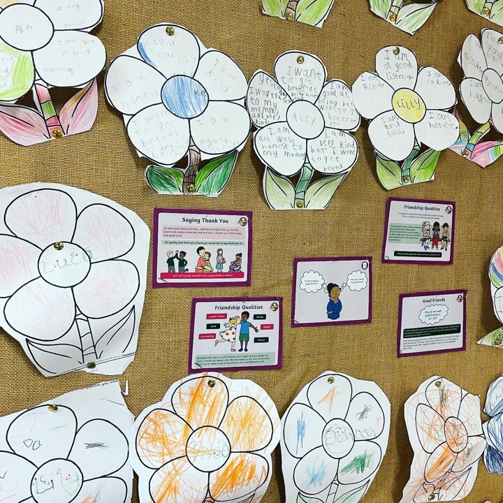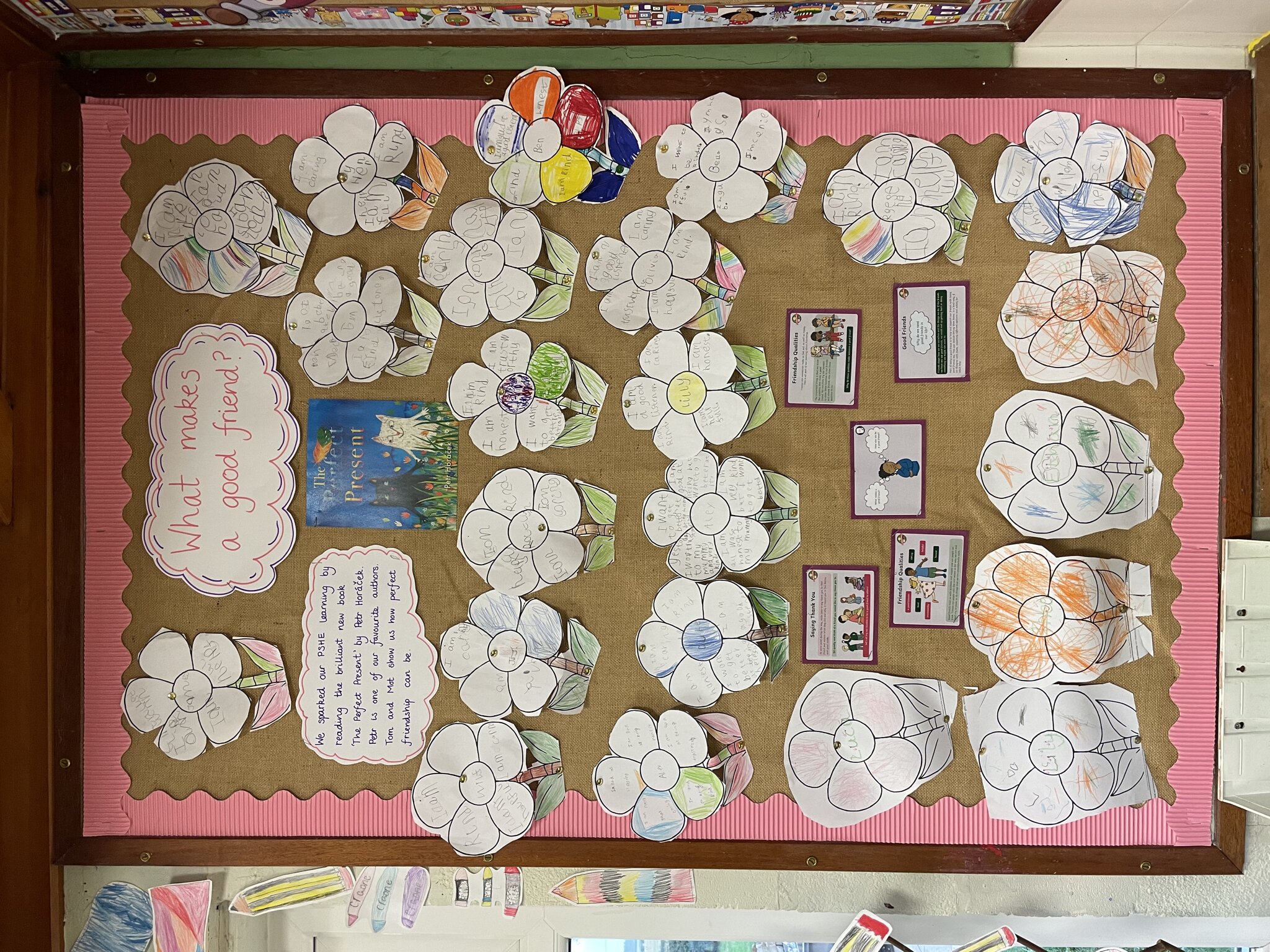 We explored the children’s ideas about friendship and the qualities you need to be a good friend. The children then thought carefully about which of those qualities they would like to improve in themselves this year.