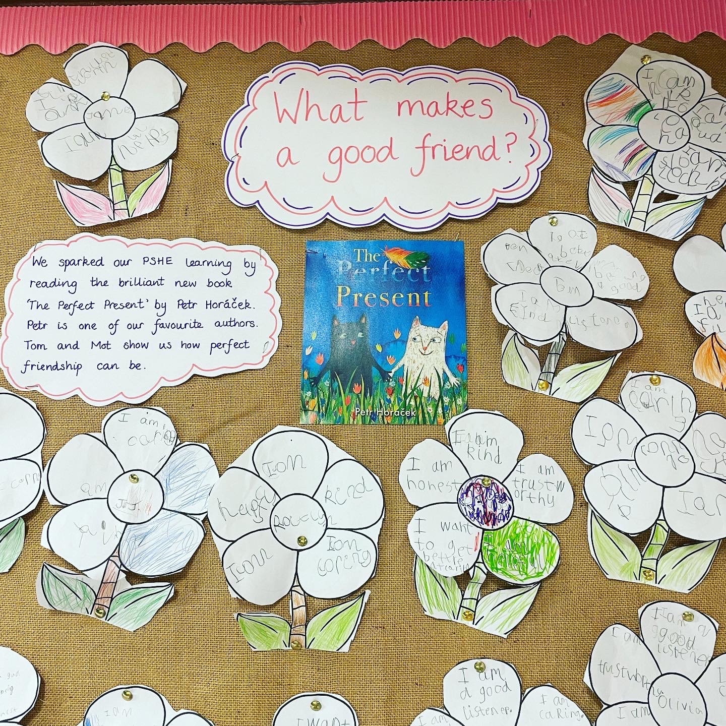 As part of our PSHE learning we explored the question ‘What makes a good friend?’. Our discussion was sparked by the lovely new picture book by Petr Horaceck called ‘The Perfect Present’. In the story we meet two best friends Tom and Mot and they give each other a birthday present and play on their birthdays.