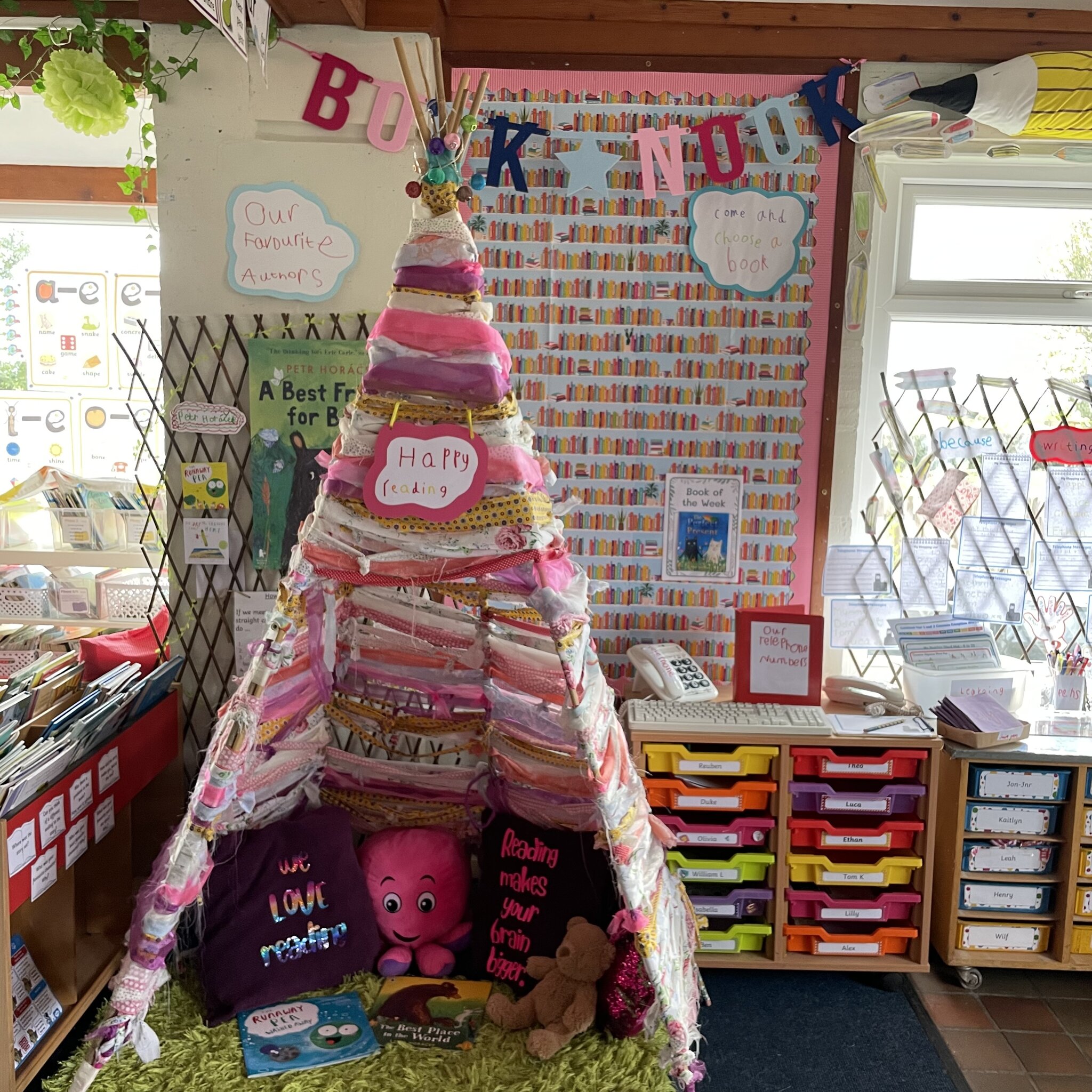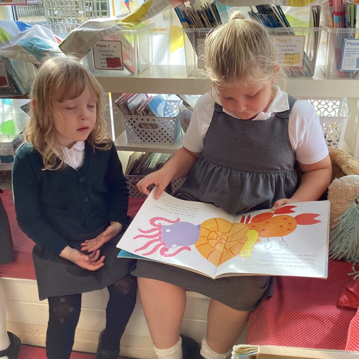 We love reading in Lower School! We have lots of opportunities to read every day and always have a story time where I read the children a story they have chosen by voting for their favourite at our book voting station. We have DEAR time, where the children ‘drop everything and read’ and at this time the children buddy up and share books together.
