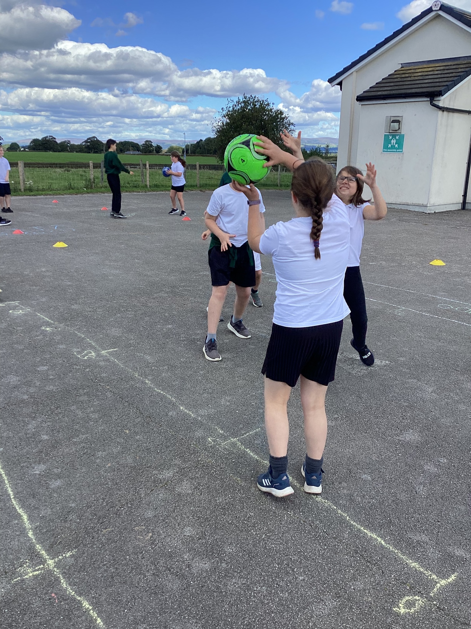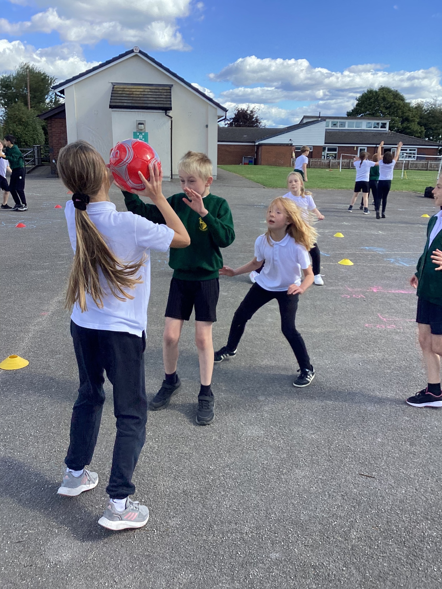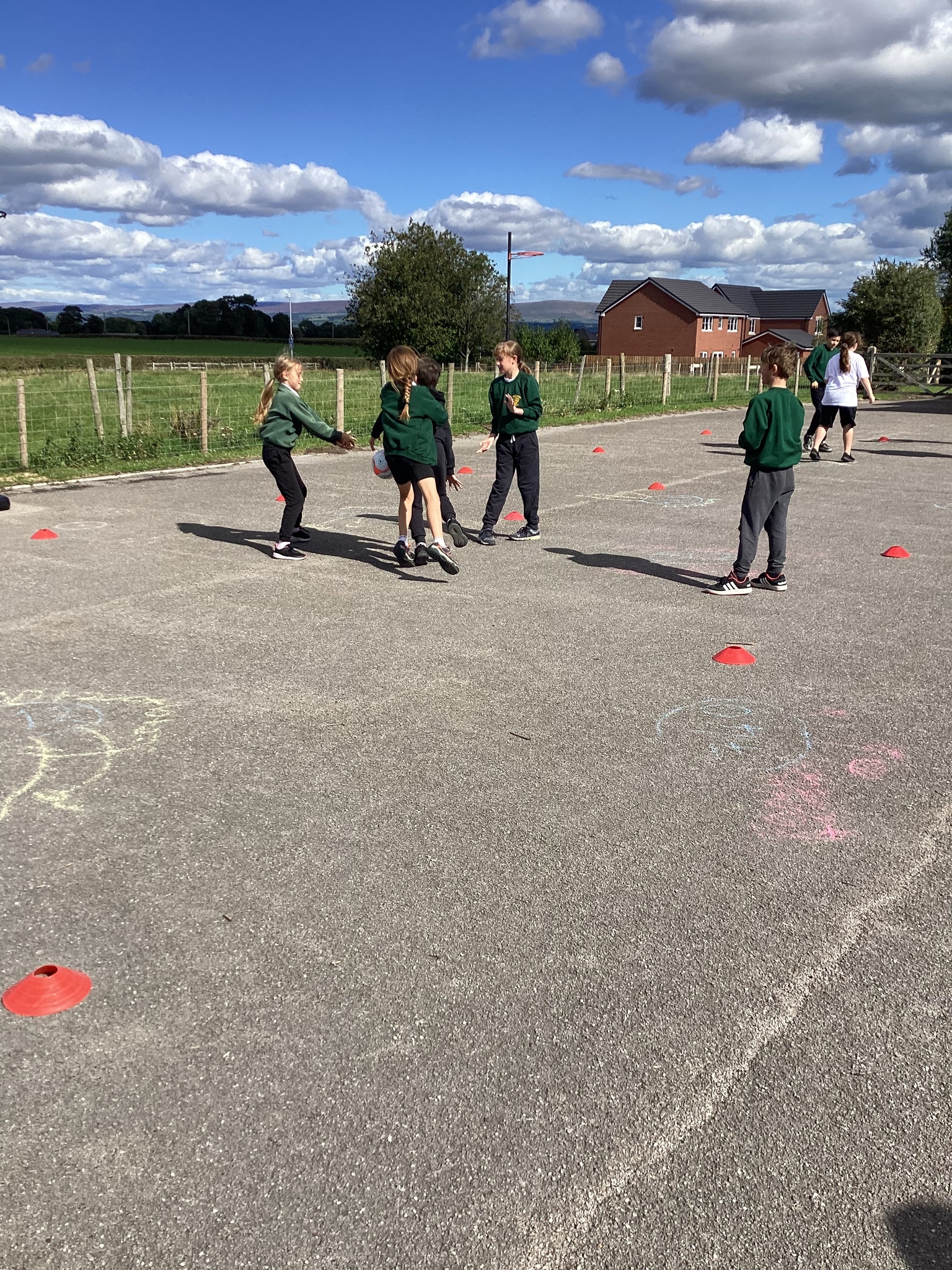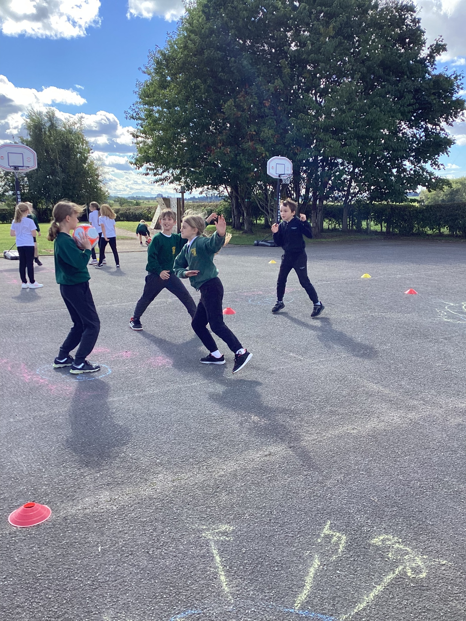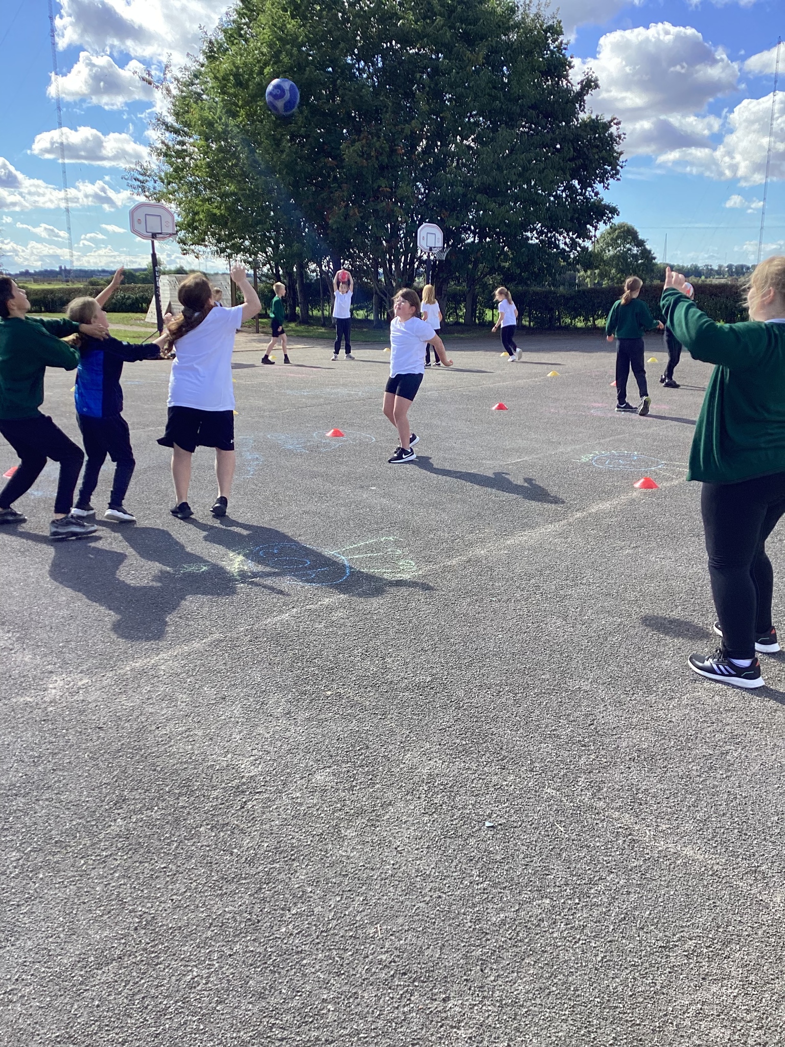 We are learning skills to play Netball-type games (from sending and receiving the ball with accuracy to using space and communication to work effectively in a team) and skills for playing invasion games (decision-making skills to deception skills!).