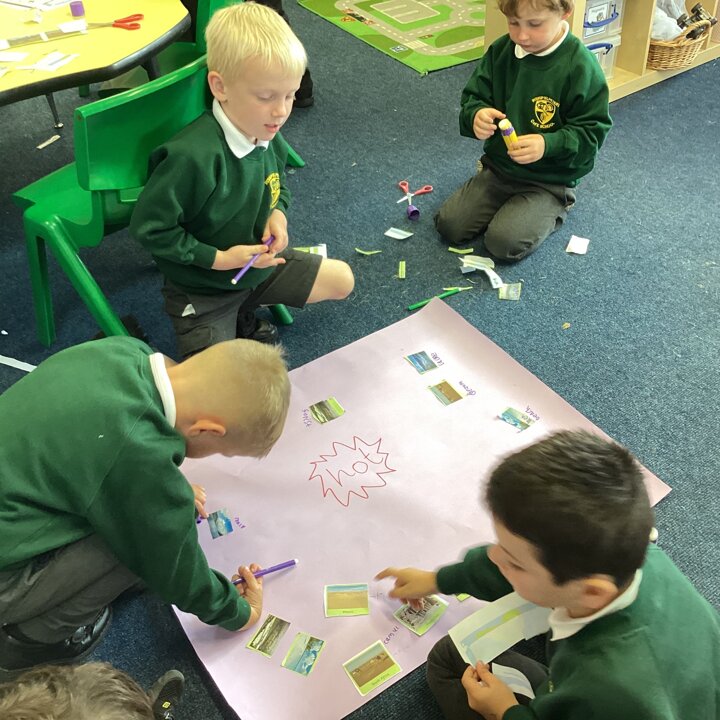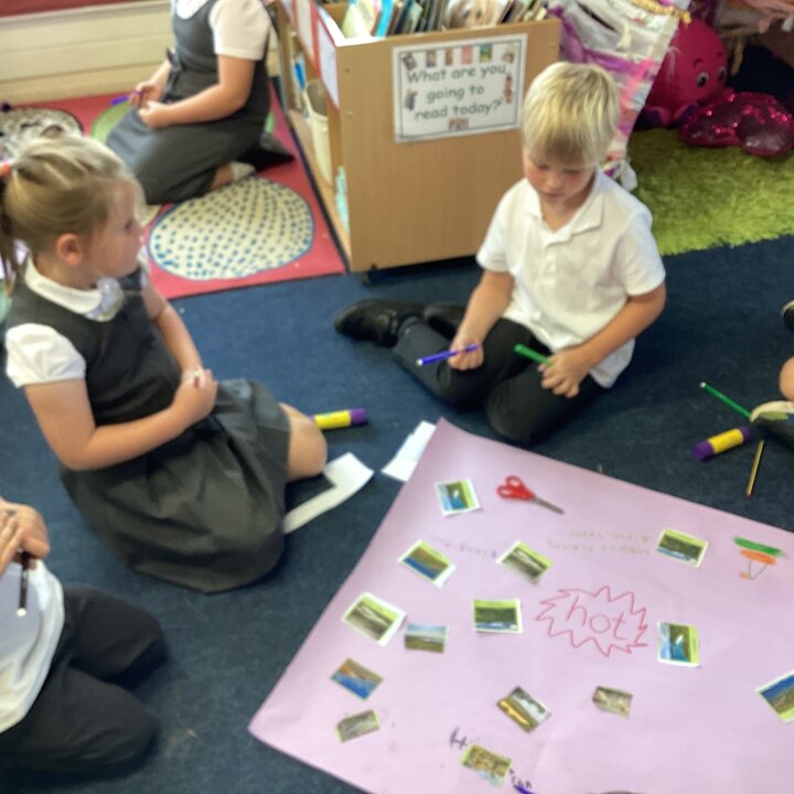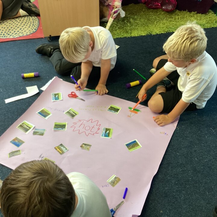 In an activity they looked at various photos together of animals, landscapes and vegetation talking about the human and physical geographical features they could see. Then they had to decide if they thought their image was showing an animal or place from a hot or cold country explaining their choice.