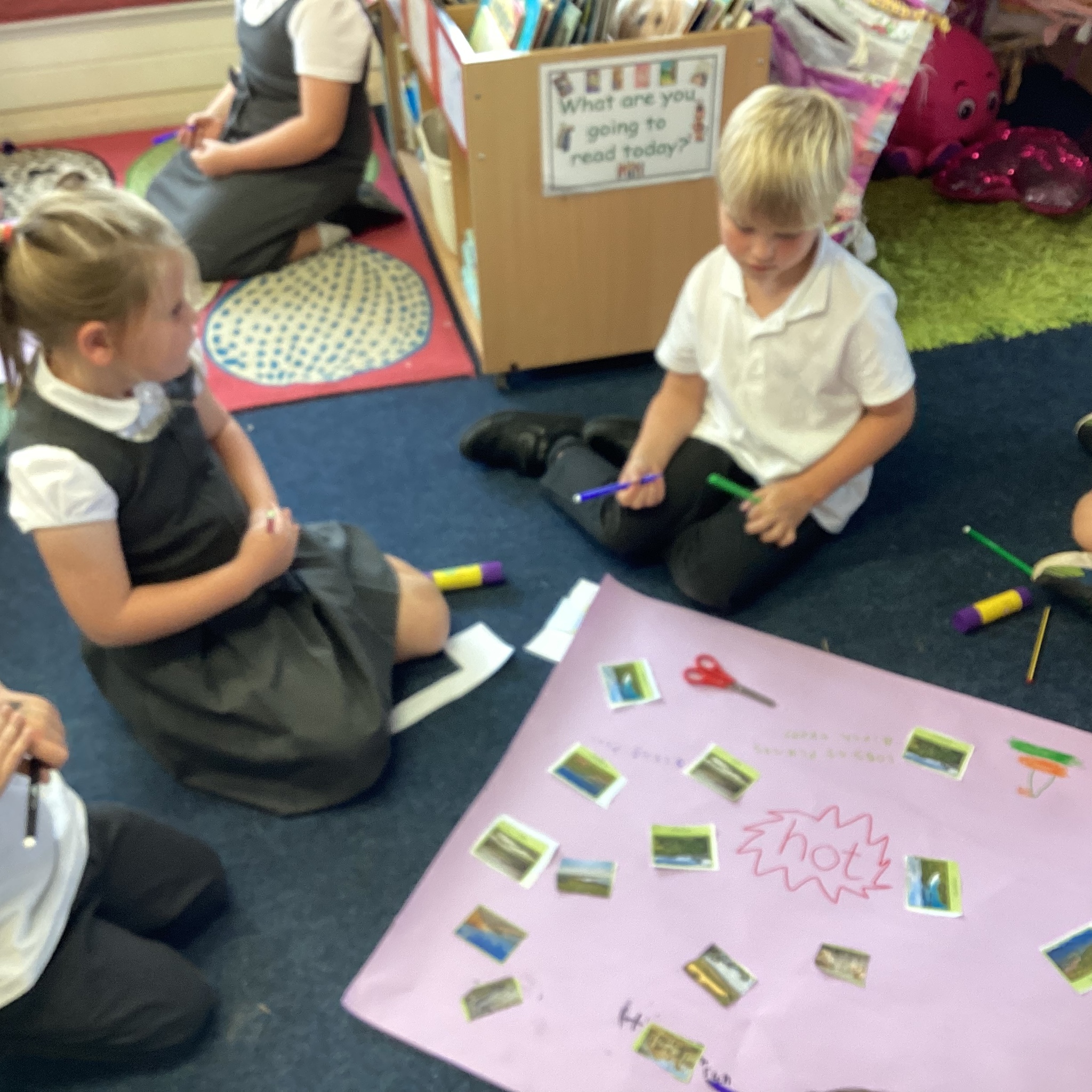 We have begun our Geography learning this week as part of our half term topic called ‘Penguins, Possums and Pigs’ . The children shared what they already knew about hot and cold places in the world and started to think about what they wanted to learn.