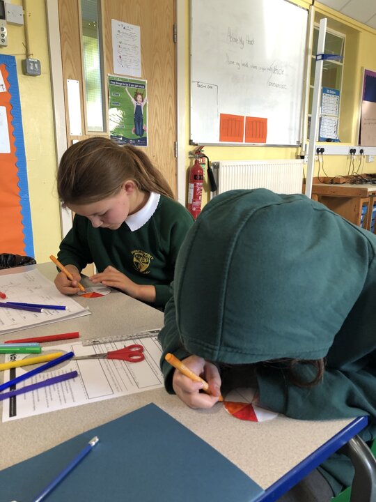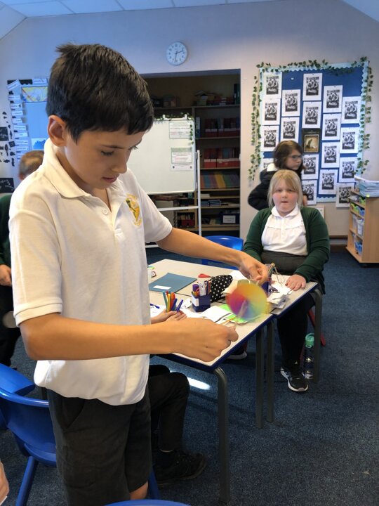 After that, we had a go at reversing the colour spectrum back to white by making a rainbow spinner.