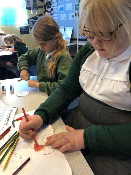 Today’s science learning was all about the visible spectrum and how light is made up of all the colours of the rainbow!