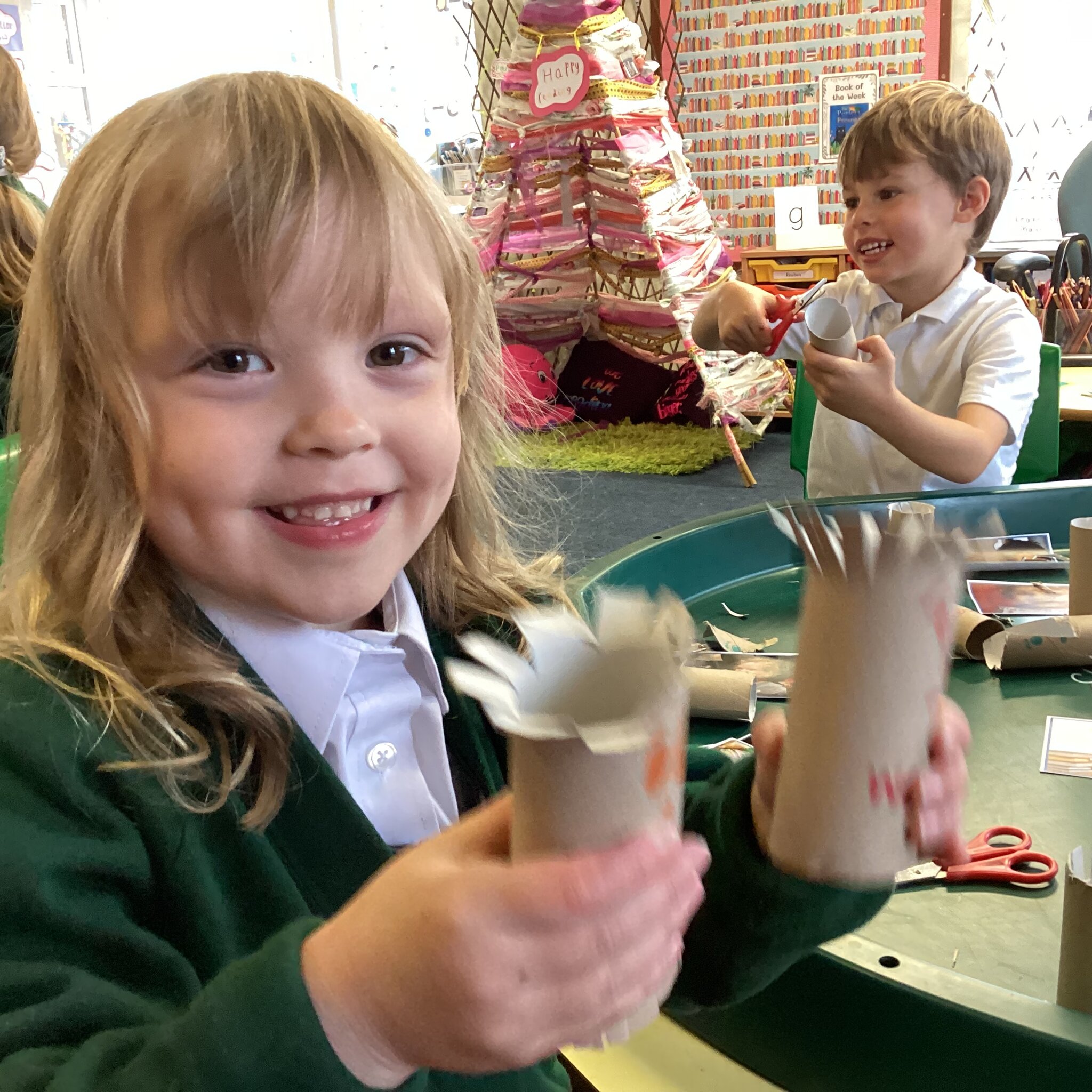 This week the children have had fun pretending to be hairdressers as they gave the cardboard rolls haircuts, legs, skirts and trousers as part of a PSHE and fine motor skills activity.
