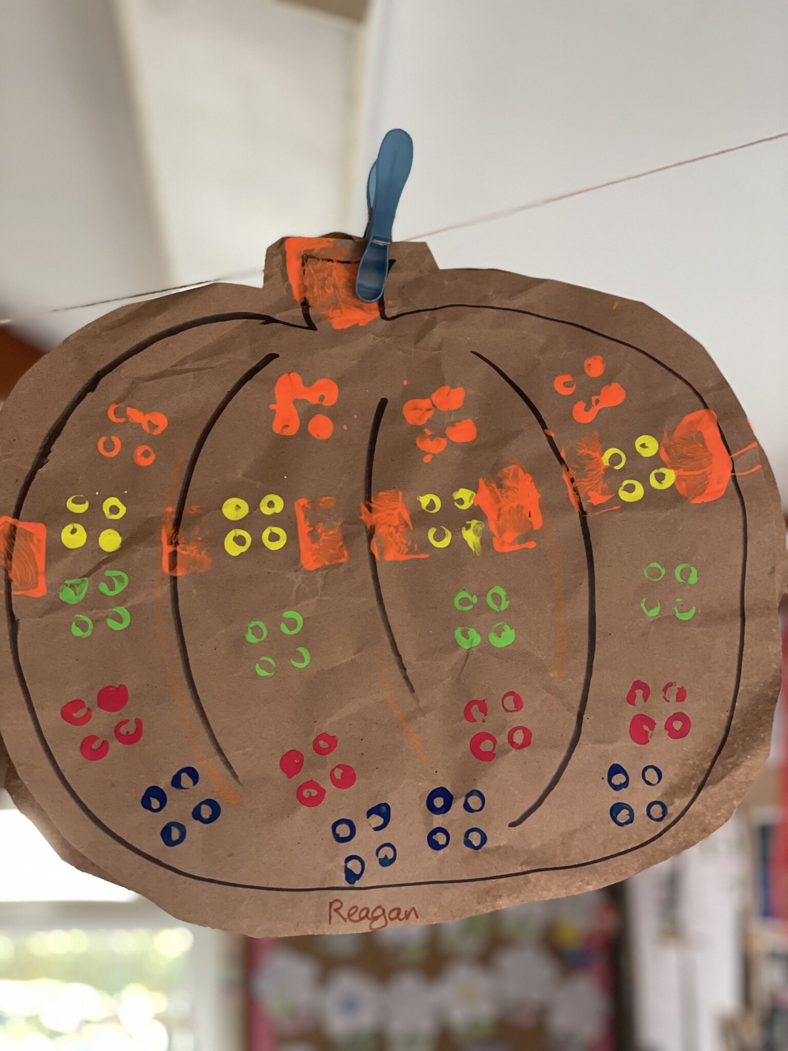 As a maths activity this week in EYFS creating patterns all the children have had the opportunity to print with Duplo blocks to create patterns on pumpkins. As part of raising awareness about recycling, as it is recycling week this week, we reused packing paper that had come in parcel to print on.