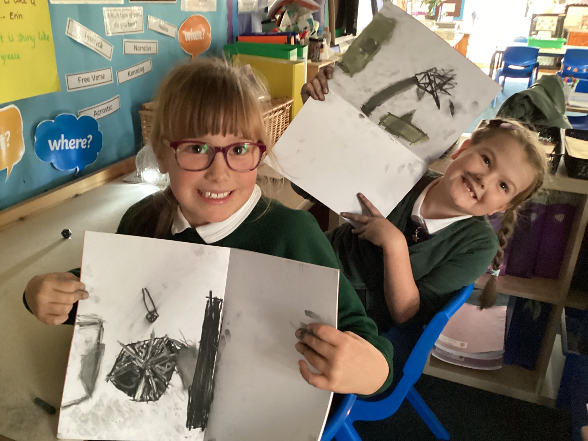 Following last week's session of using charcoal for the first time, children continued to explore the medium further this week.