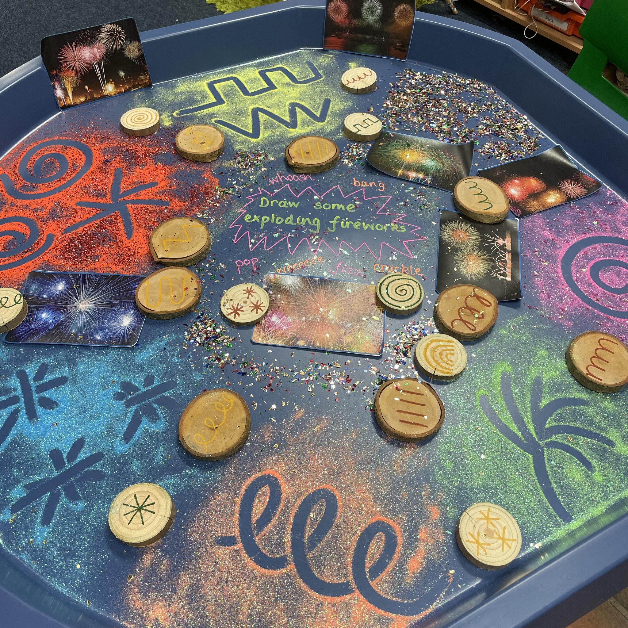 Our Reception children have been having fun creating fireworks in glitter and sand this week. They have been practicing writing letters and numbers too.