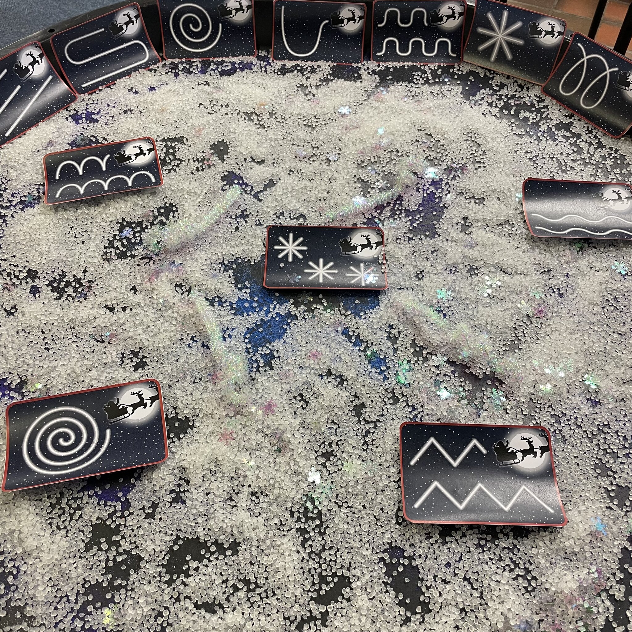 A winter themed mark making activity set up for our Reception children this week but of course all the class have been using it for learning and fun.