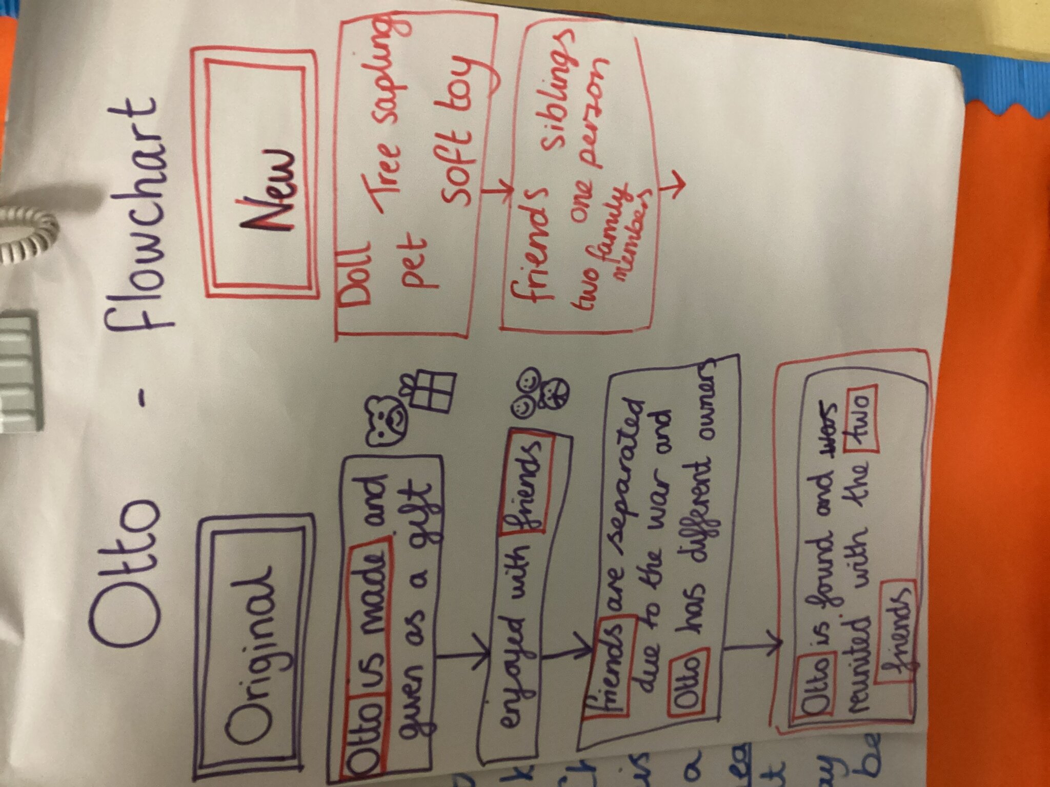 Today, we created a flowchart of the main events of the story and discussed as a class which details we would alter to innovate the story. We decided that instead of a teddy bear, a character could be given a toy or a pet. Instead of the two little boys, we talked about other possibilities. Instead of the boys being separated due to one being horrifically sent off to a concentration camp, we talked about how children could be separated as evacuees or maybe family members sent off to fight on the front line.