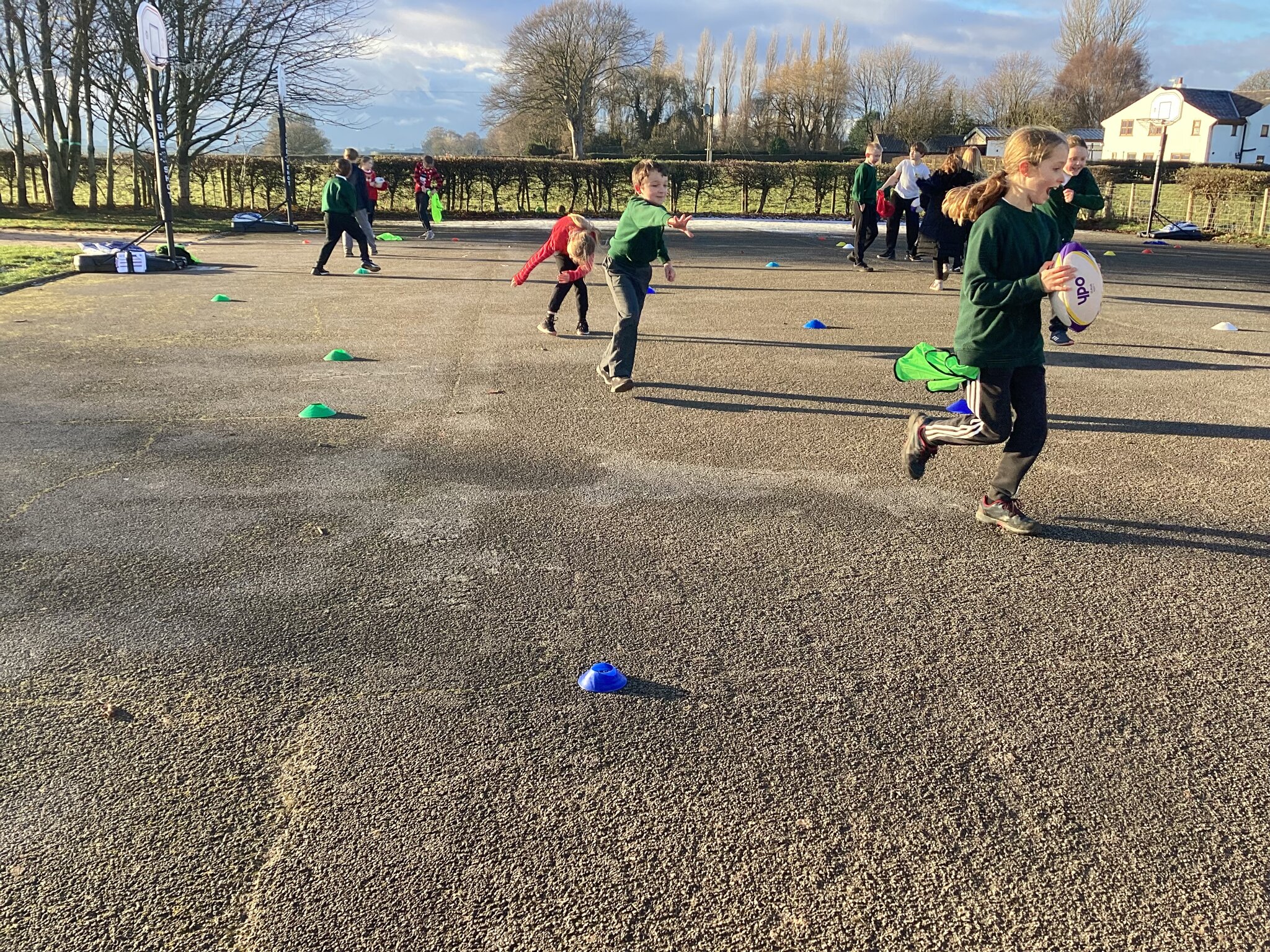 For our final lesson, we focused on the skills required to send and receive a rugby ball but Upper School were given the opportunity to discuss, change and add in ideas to make game play different. Children were provided with a path of cones, a selection of bibs and a few ideas. From there, each team created their own game involving varying numbers of defenders who needed to collect the tags (bibs) from their opposition and varying numbers of attackers who needed to score points for tries.