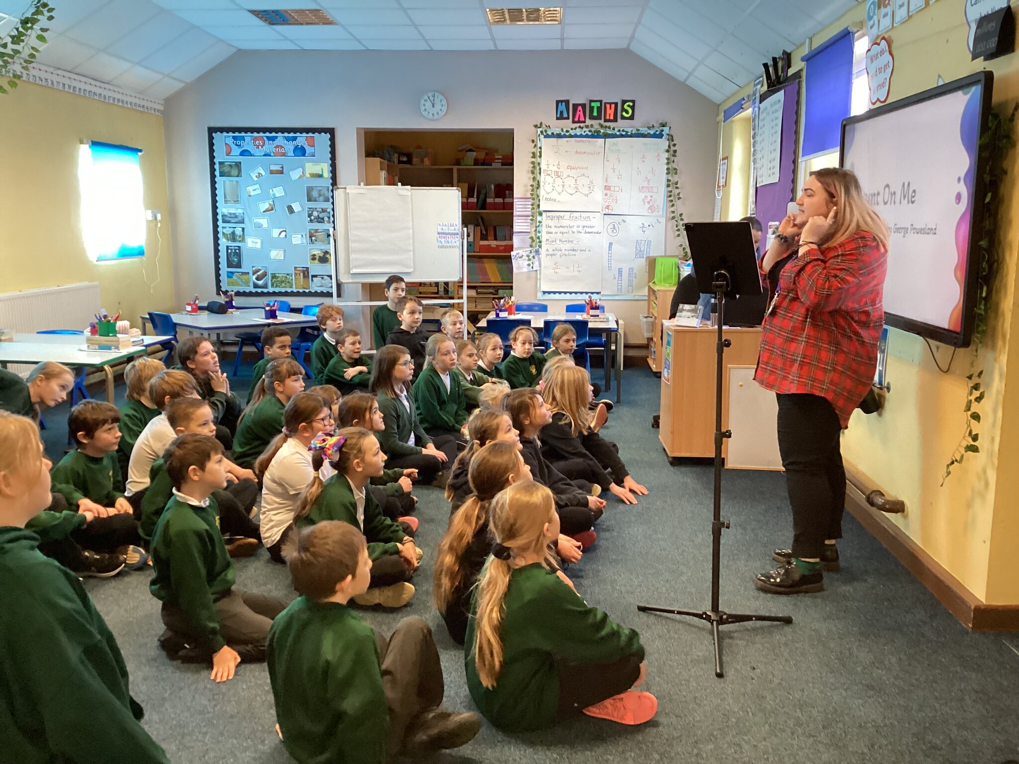 Middle school children enjoyed going up to upper school for our let's go sing practice. We learned the second half of our songs and did incredibly well for a first time hearing them!