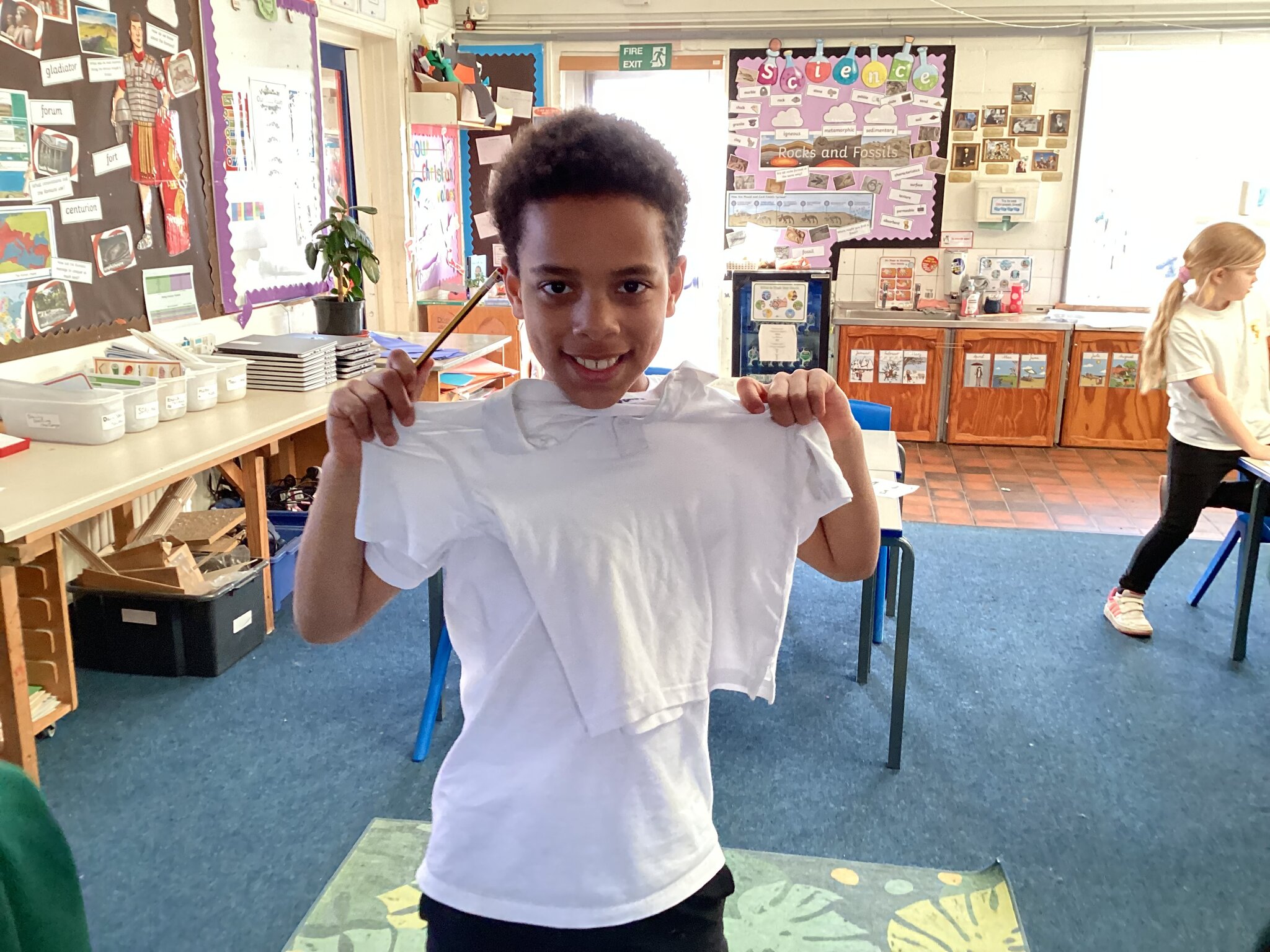Year fours can explain a piece of clothing, if it is big, small, long or short and can tell us the colour including whether it is dark or light.