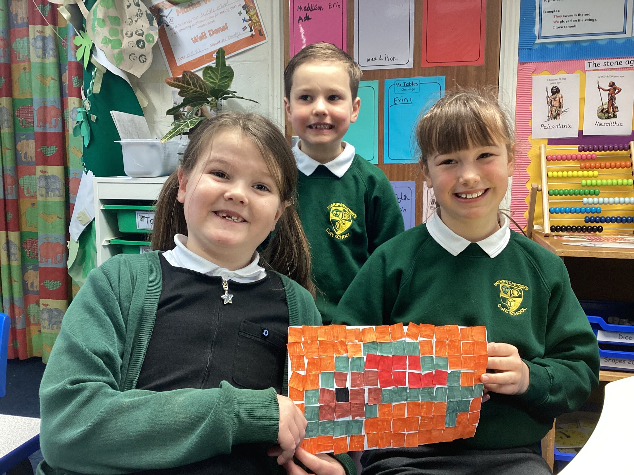 We began the morning with a 'Maths Mosaic' where children had to solve problems to find out how many squares of each colour to make - they then had to work out which colours went where on their pictures. This was made extra tricky by the fact that this was written in Roman Numerals!