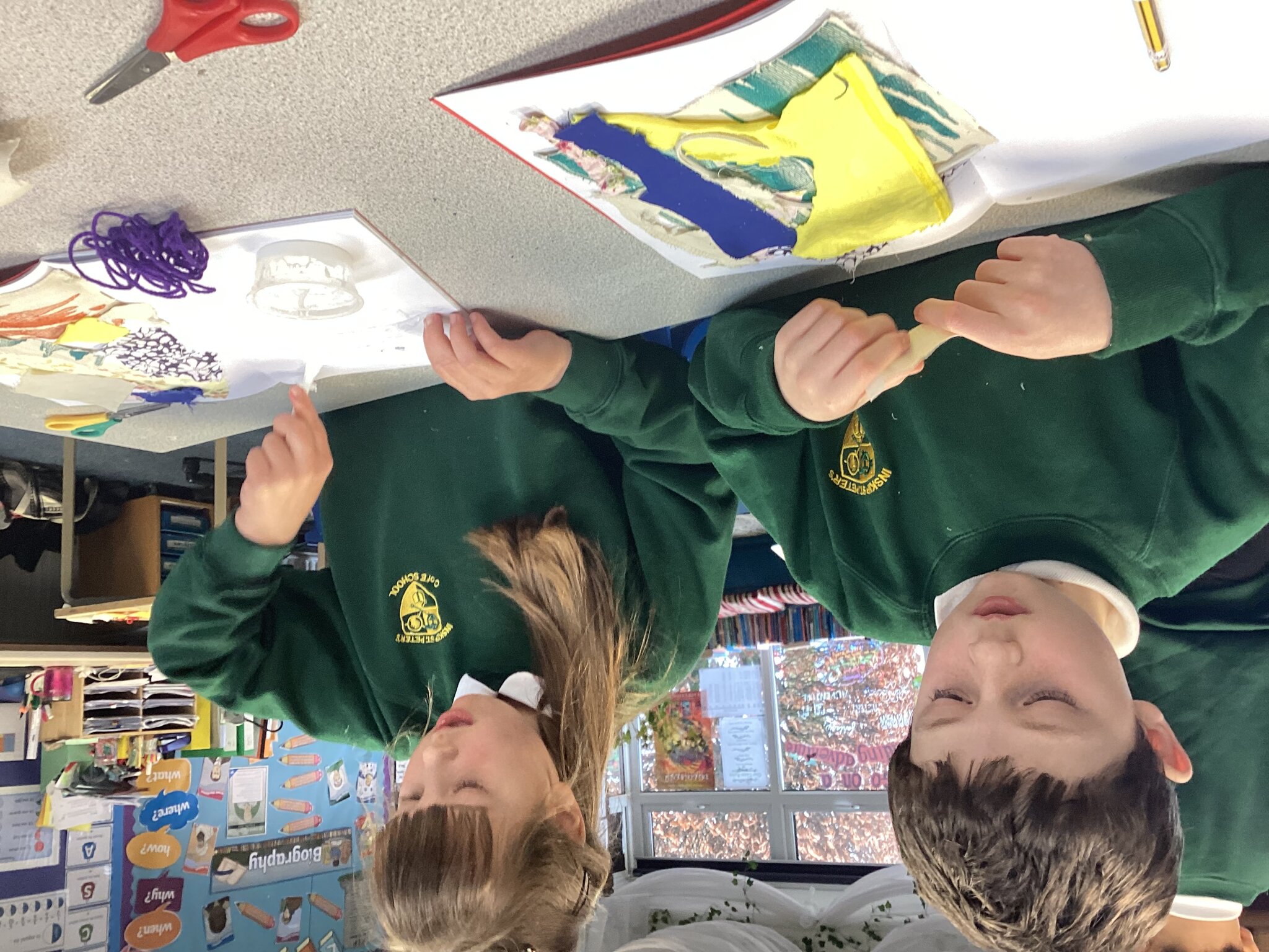 In art this week the children were inspired by artists Hannah Rae and Alice Kettle, who both use fabrics to create their art pieces.